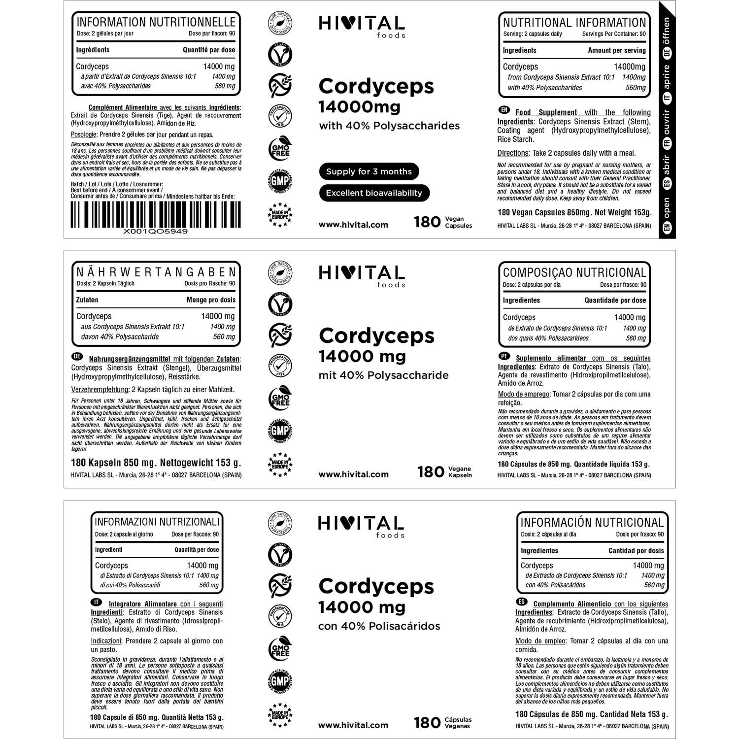 FABRICADO NA ESPANHA sob certificados GMP e ISO. Hivital Foods está registrada na saúde (AESAN) com número 26.019181B.