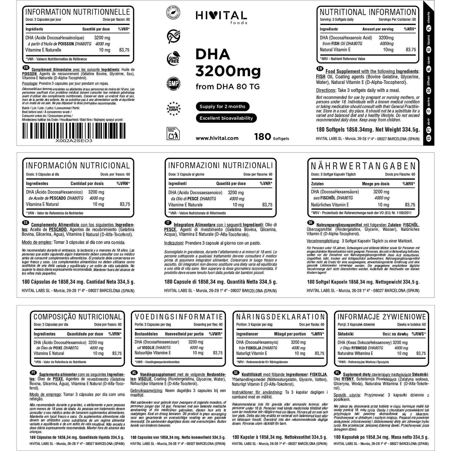 EXCELENTE FÓRMULA à base de 3200 mg de DHA (Ácido DocosaHexaenoico) em sua forma de Triglicerídeo (TG) para maximizar a absorção, e 10 mg de Vitamina E Natural D-Alfa Tocoferol. Usamos Óleo de Peixe Natural purificado totalmente livre de Metais Pesados e Tóxicos.
