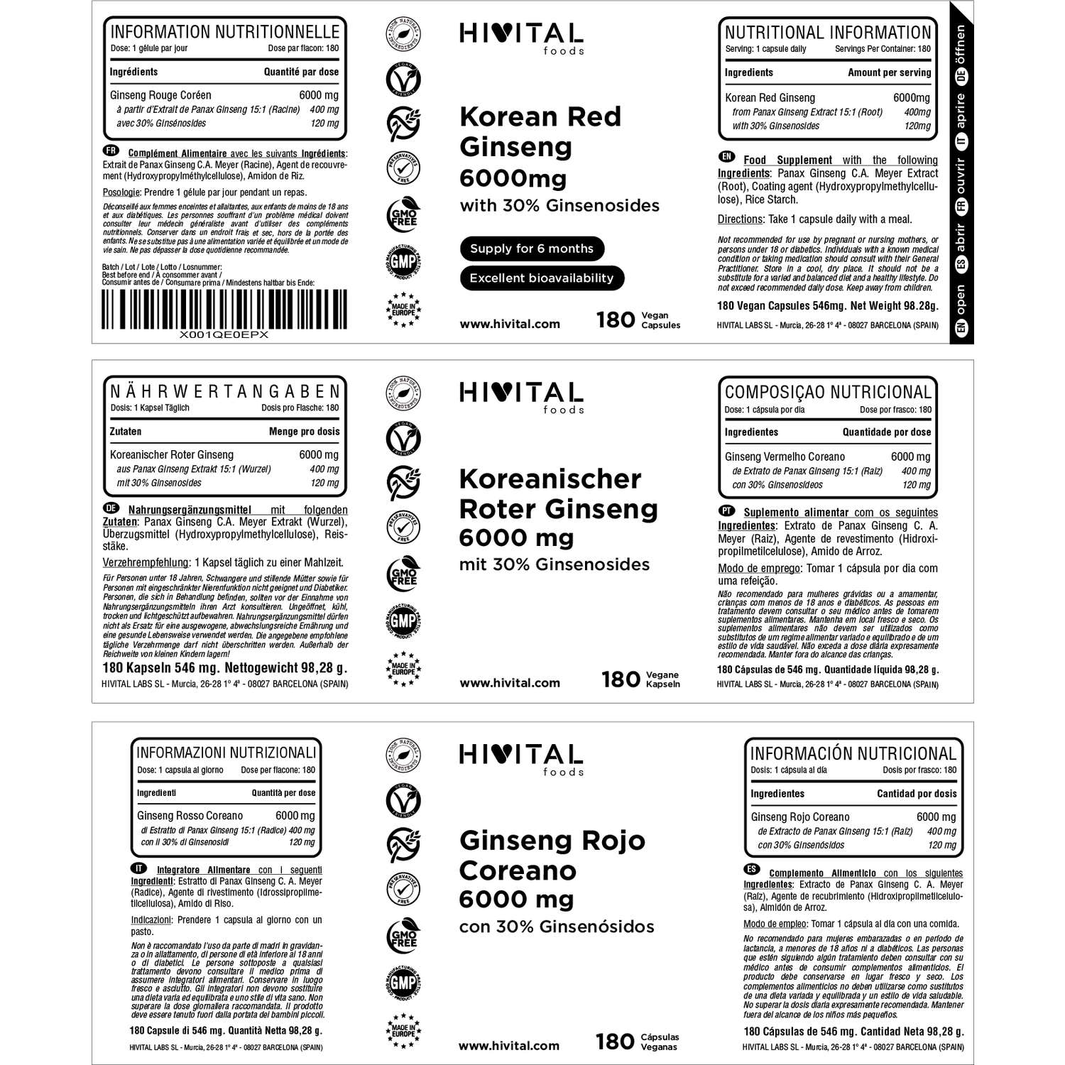 FABRICADO NA ESPANHA sob certificados GMP e ISO. Hivital Foods está registrada na saúde (AESAN) com número 26.019181B.