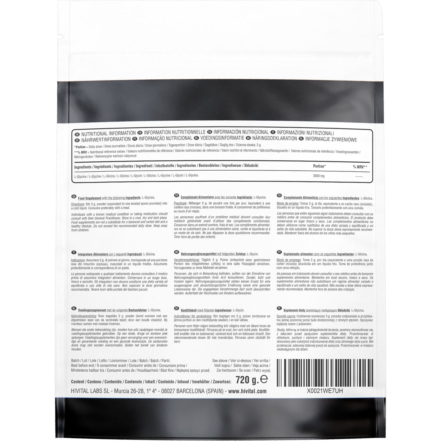 FABRICADO NA ESPANHA sob certificados GMP e ISO. Hivital Foods está registrada na saúde (AESAN) com número 26.019181B.
