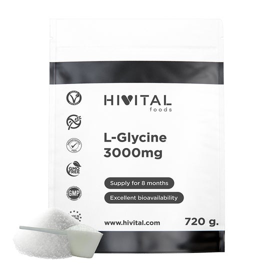 EXCELENTE FÓRMULA à base de L-Glicina vegana. O aminoácido Glicina é proteogênico e sintetiza o L-Glutation, a Creatina e a hemoglobina. A Glicina também sintetiza Colágeno.