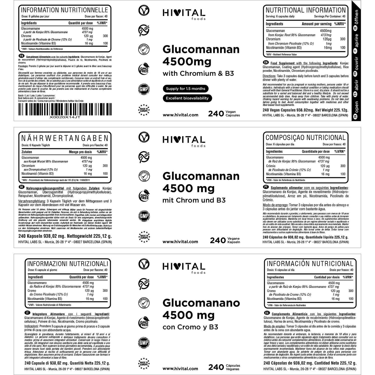 FABRICADO NA ESPANHA sob certificados GMP e ISO. Hivital Foods está registrada na saúde (AESAN) com número 26.019181B.