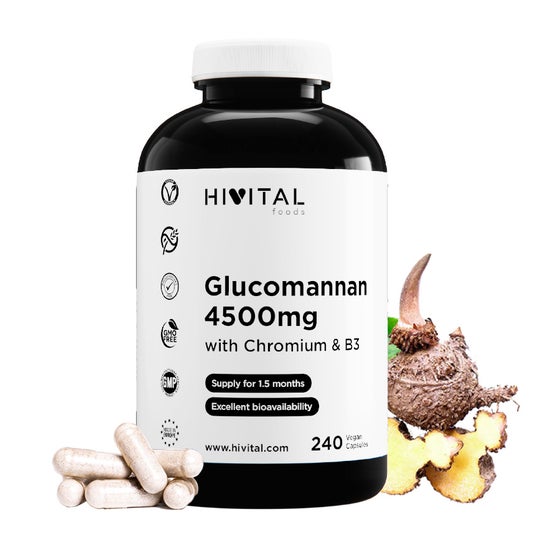 - 4500 mg de Glucomanano Natural a partir da raiz de Konjac