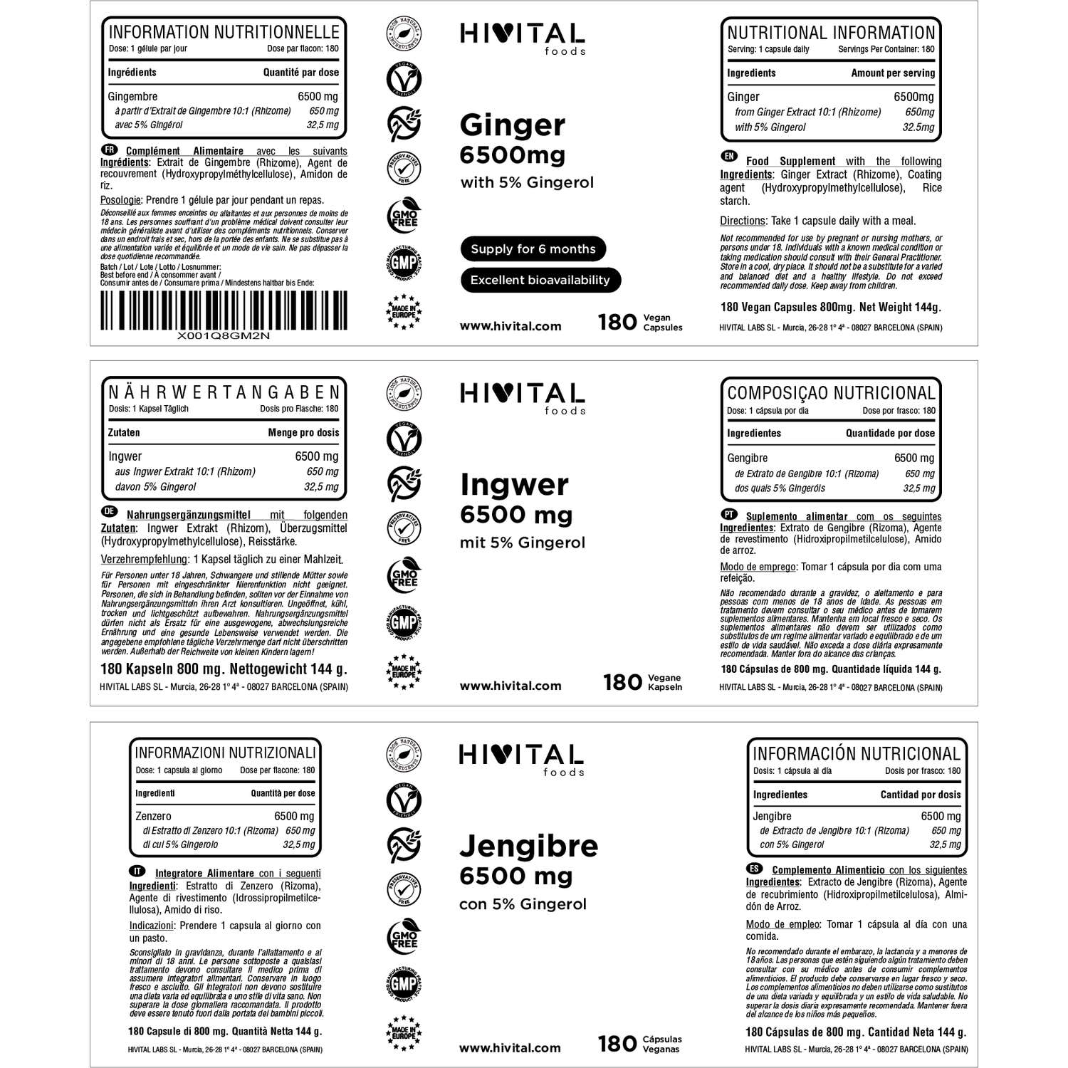 O MELHOR GENGIBRE: Cada cápsula é elaborada com 650 mg de Extrato Natural de rizoma de Gengibre (Zingiber Officinale) concentrado com uma proporção de 10:1 e 5% de Gingerol, fornecendo: