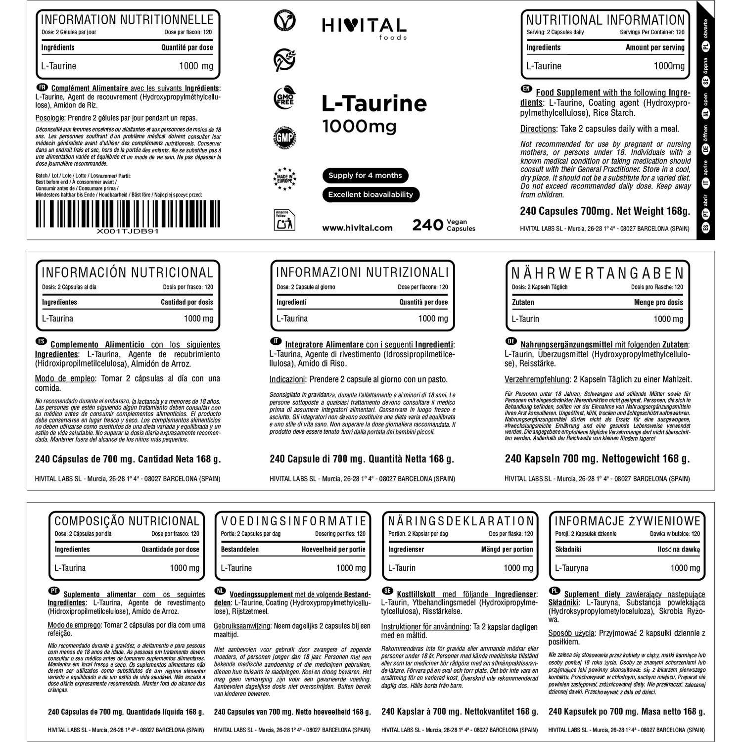 FABRICADO NA ESPANHA sob certificados GMP e ISO. Hivital Foods está registrada na saúde (AESAN) com número 26.019181B.