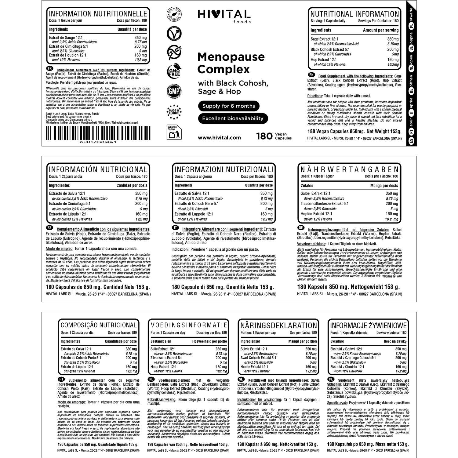 FABRICADO NA ESPANHA sob certificados GMP e ISO. Hivital Foods está registrada na saúde (AESAN) com número 26.019181B.