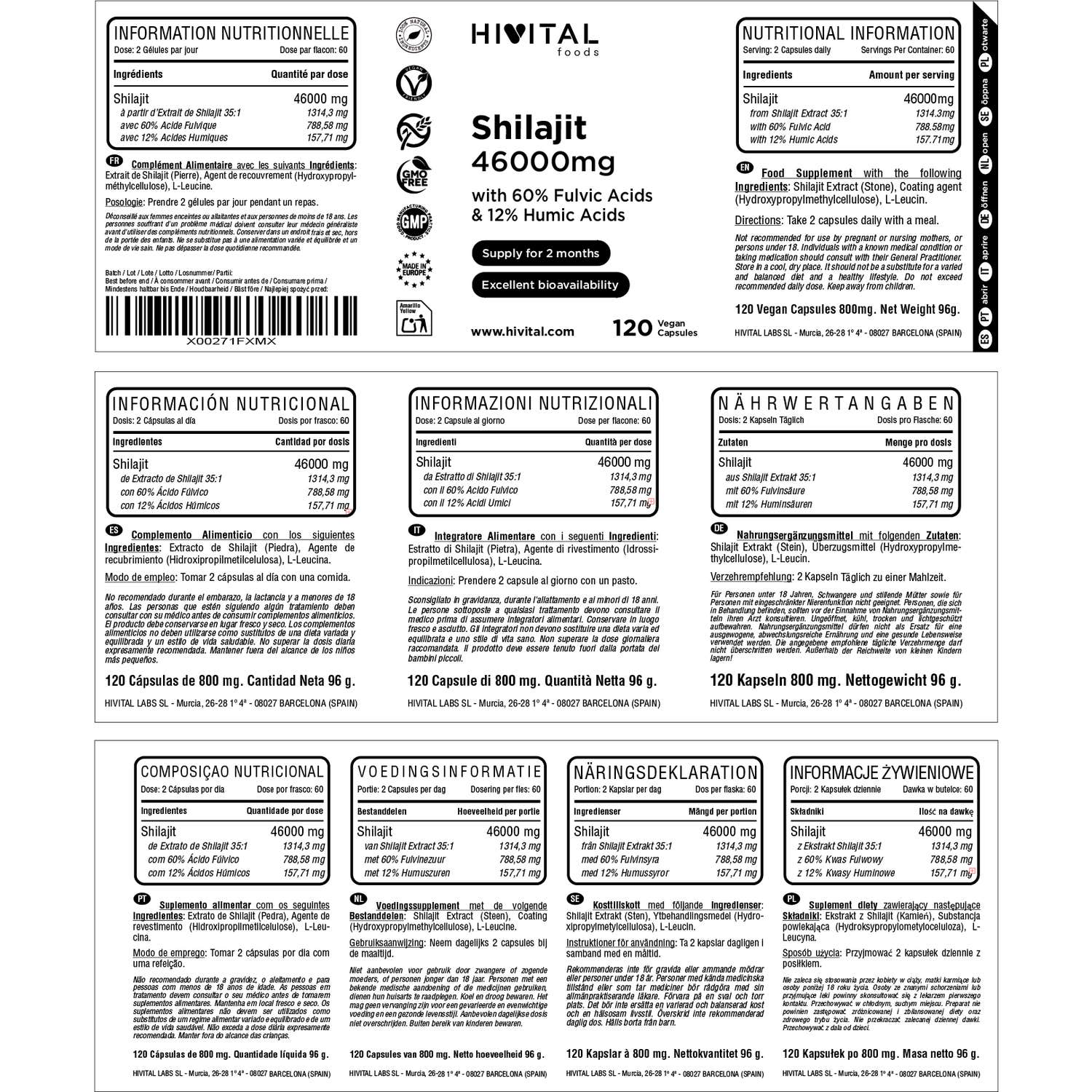 FABRICADO NA ESPANHA sob certificados GMP e ISO. Hivital Foods está registrada na AESAN com número 26.019181B.