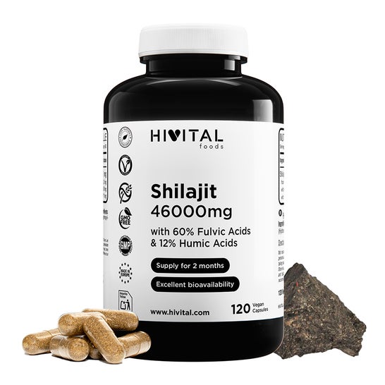 EXCELENTE FÓRMULA à base de Extrato Natural de Shilajit do Himalaia fornecendo 46000 mg por dose. Em cápsulas veganas, mais prático e simples do que a resina amarga.