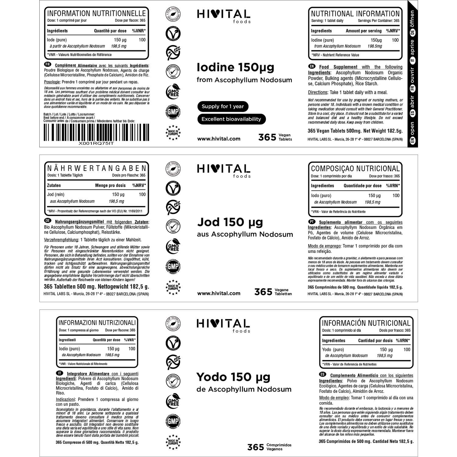 FABRICADO NA ESPANHA sob certificados GMP e ISO. Hivital Foods está registrada na saúde (AESAN) com número 26.019181B.