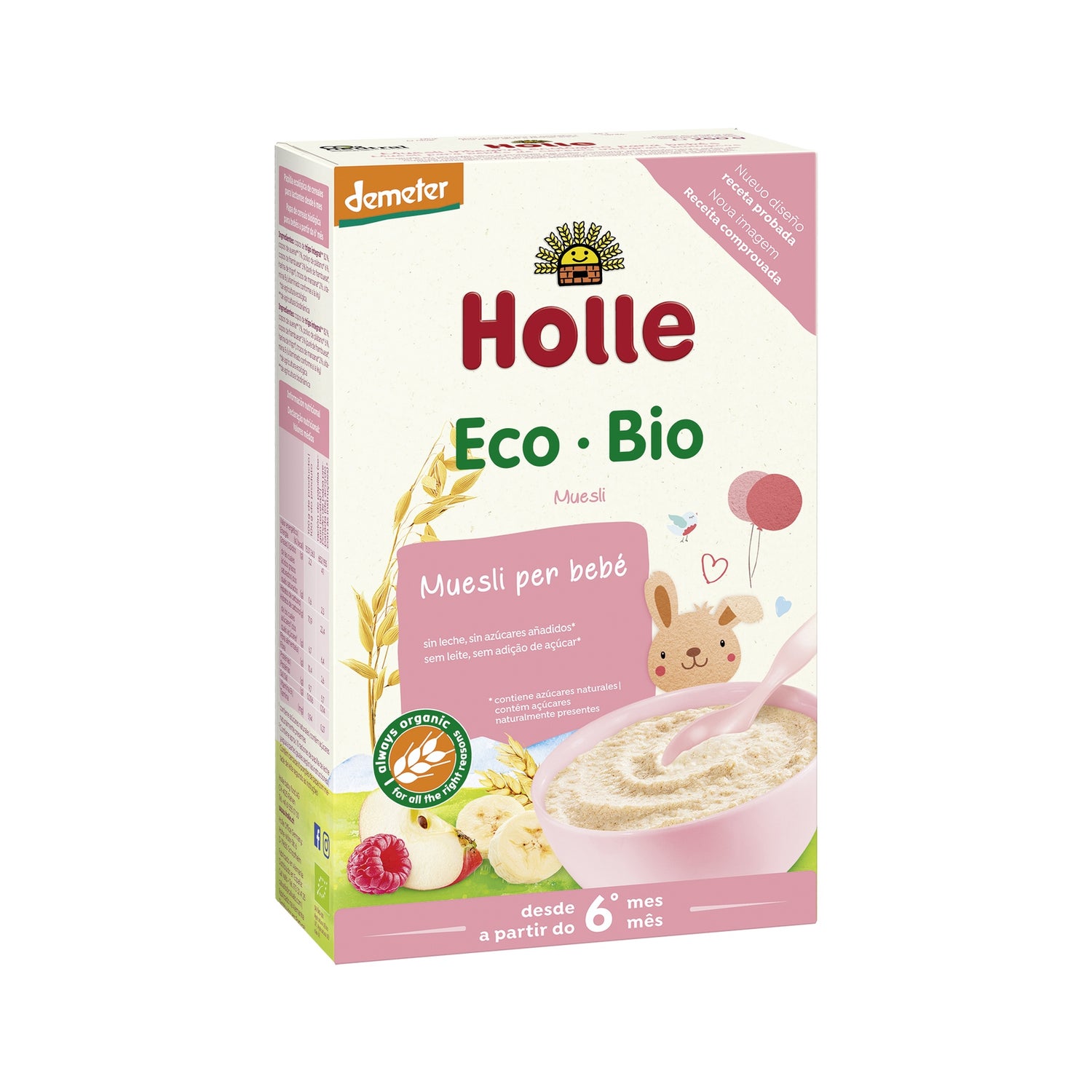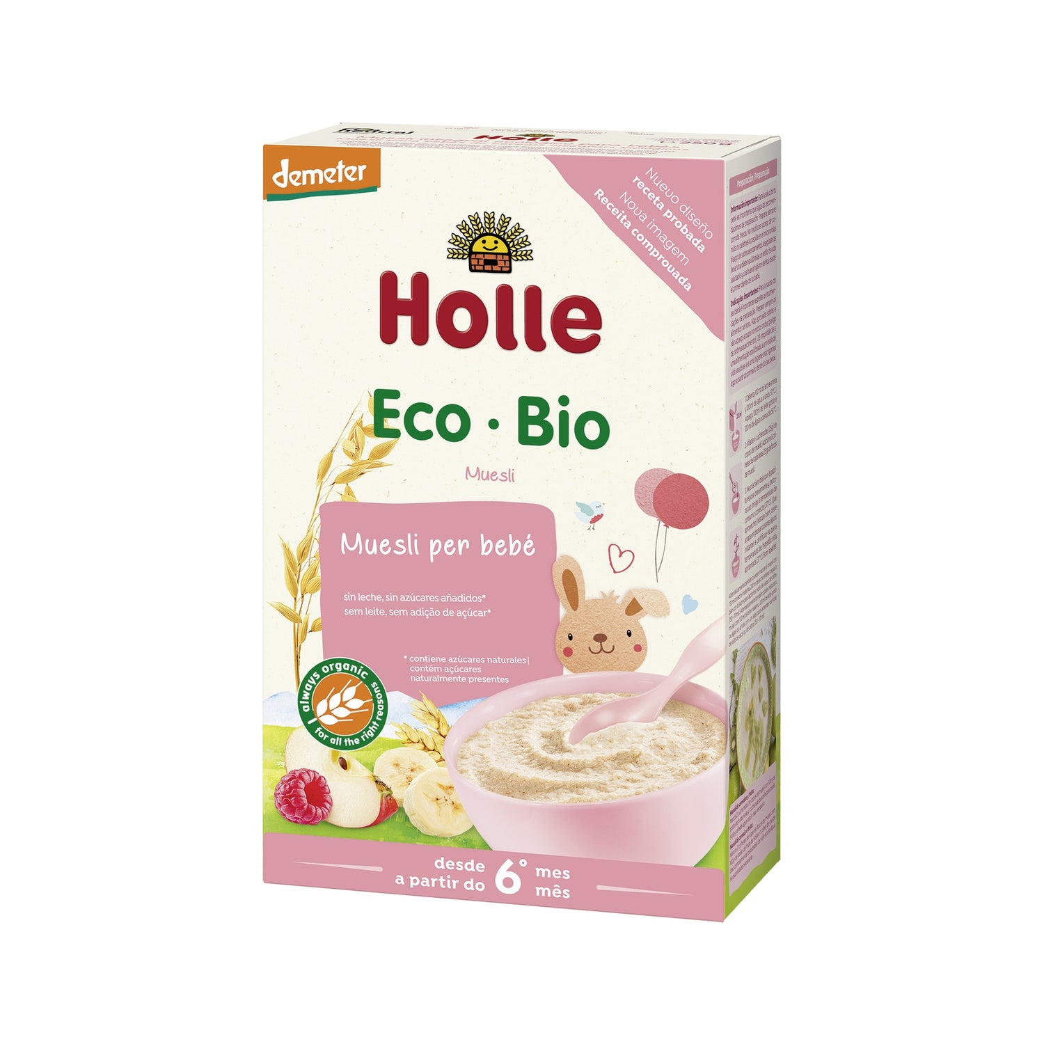 Preparado para papas de muesli feitas a partir do grão inteiro de 2 cereais de agricultura biológica, trigo e aveia, e que é recomendado para a alimentação complementar de bebés a partir dos 6 meses de idade, uma vez que os seus ingredientes são uma grande fonte de nutrientes saudáveis.