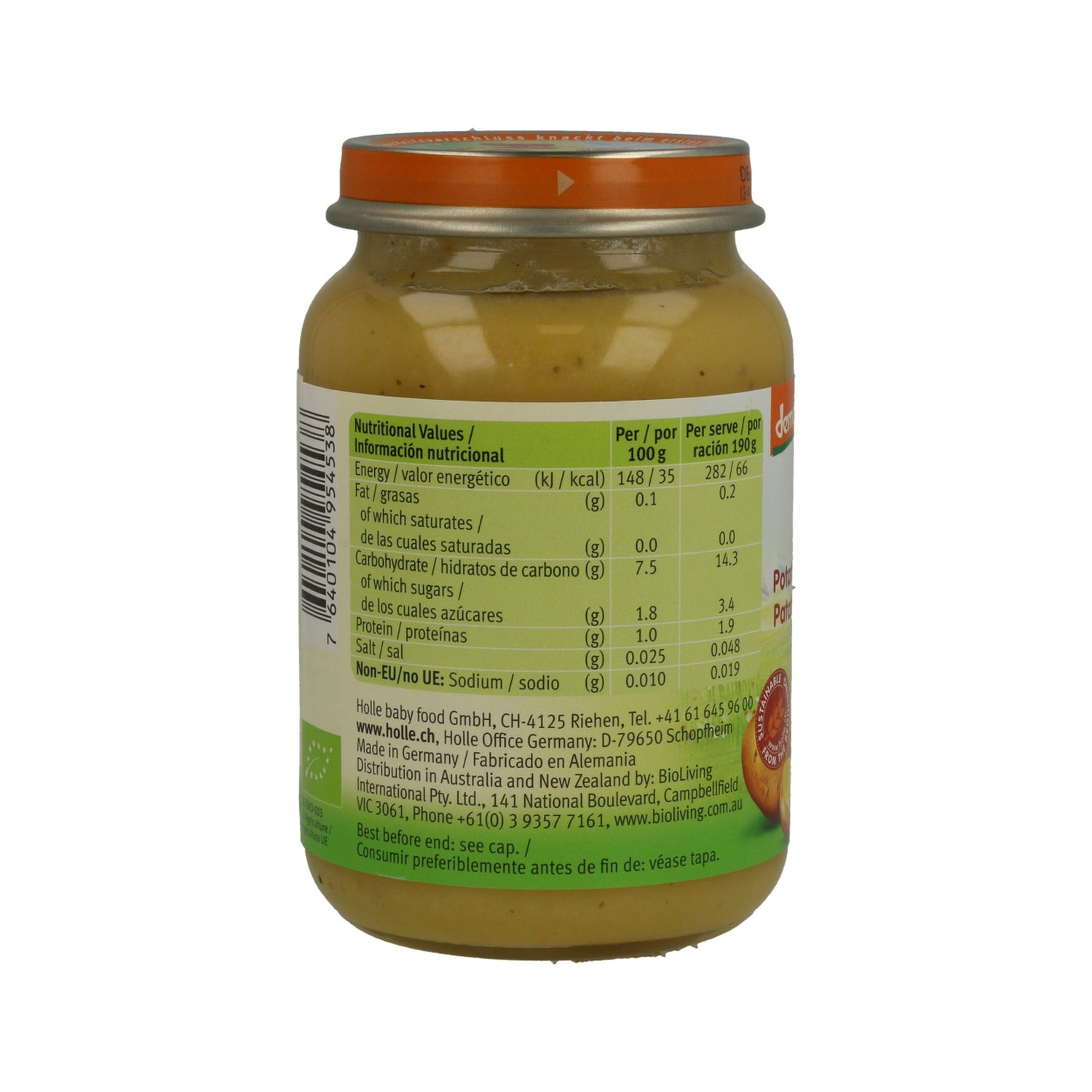 Holle Potito Batata Abóbora Abobrinha é um produto projetado para contribuir para uma alimentação equilibrada e saudável. Este potinho, que combina abobrinha, abóbora e batata de origem ecológica, é ideal para ajudar o bebê a se familiarizar com alimentos de maior consistência. Está recomendado para uso a partir dos seis meses, facilitando assim a transição para a alimentação complementar.