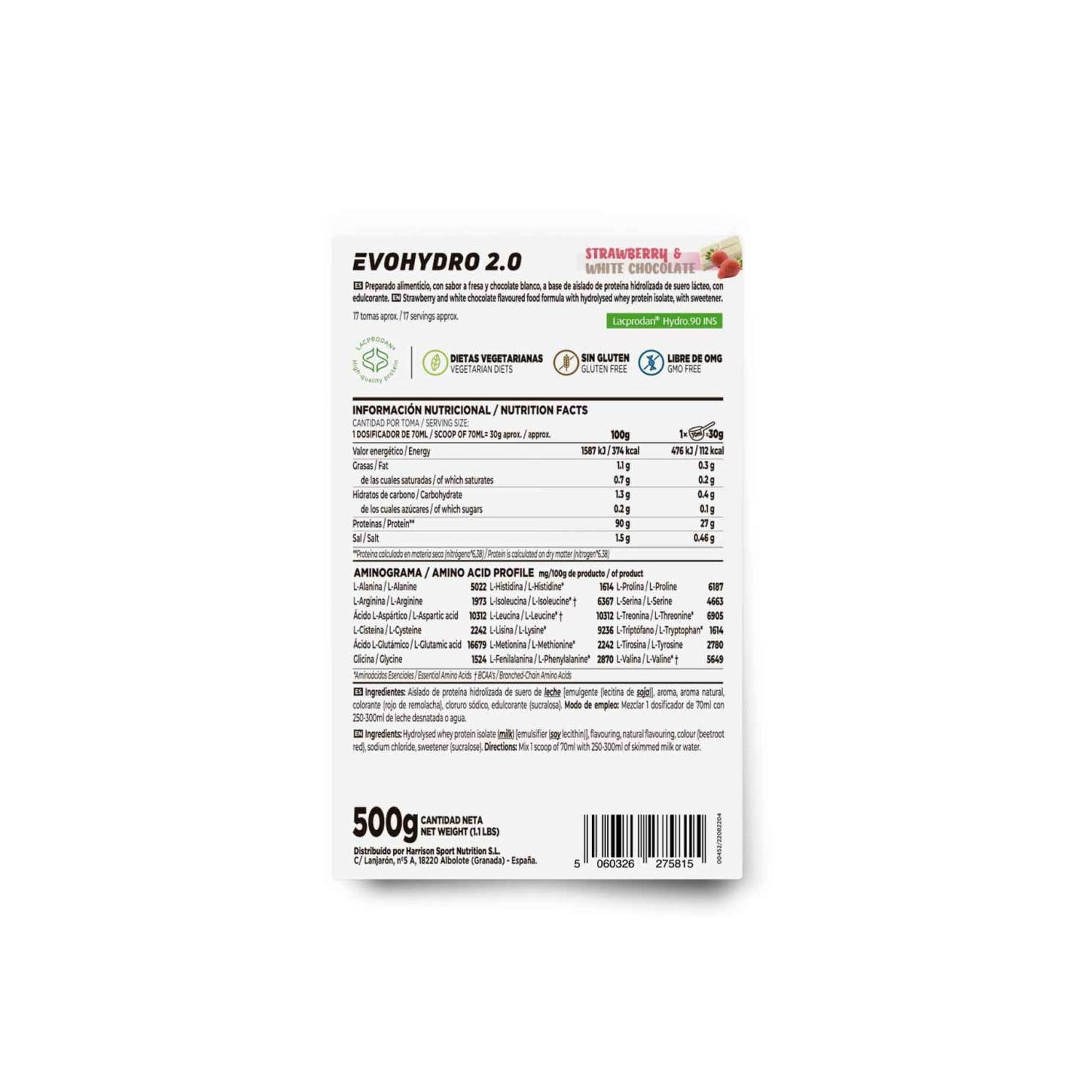 HSN Evohydro 2.0 Hydro Whey Fresa y Chocolate Blanco 500g