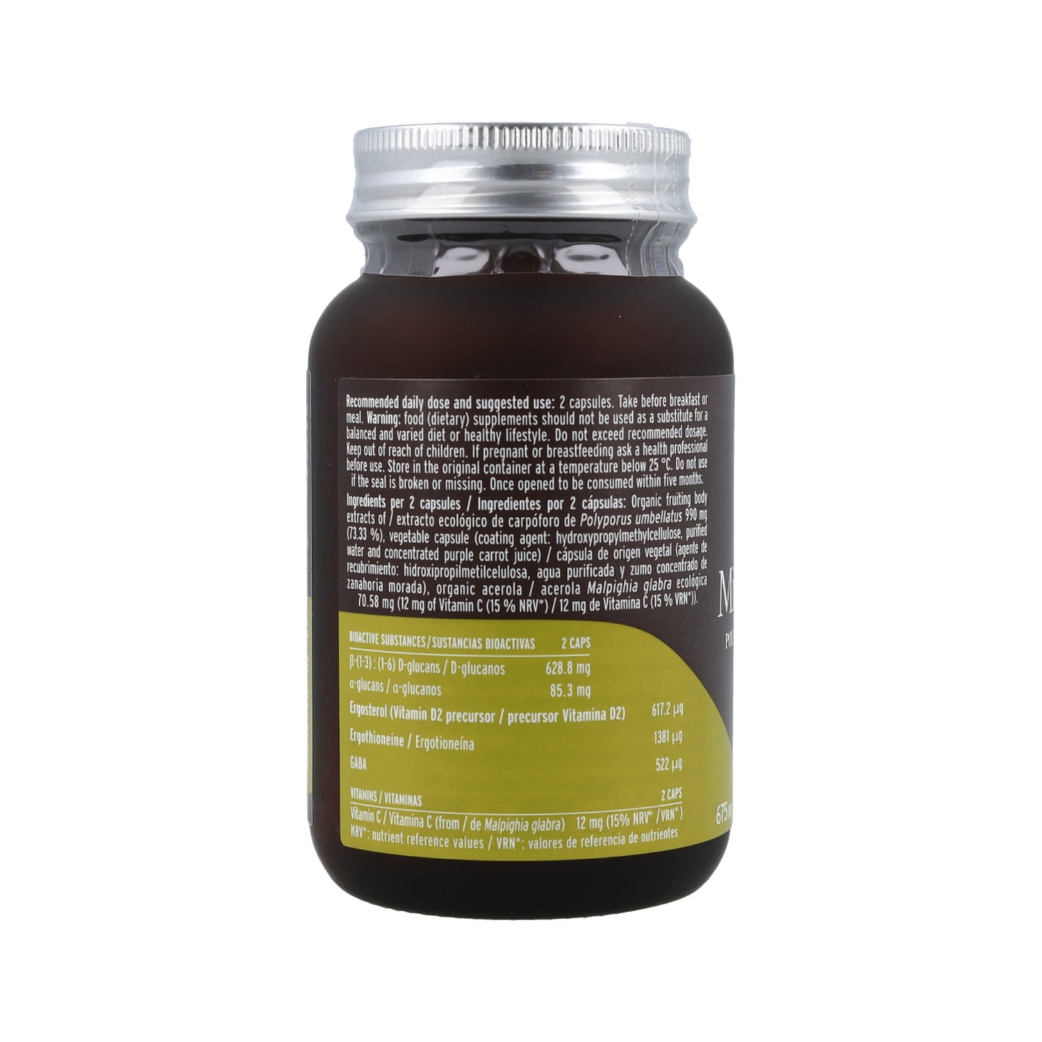 Um suplemento alimentar com a maior concentração de ingredientes activos de Polyporus (Polyporus umbellatus), o cogumelo purificador por excelência. Mico Polypor contém apenas extracto puro. Estimula o sistema imunitário e actua como diurético.