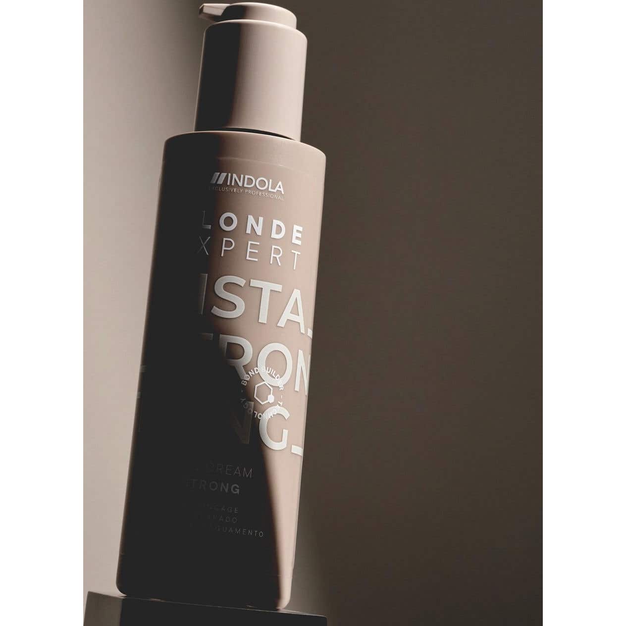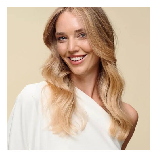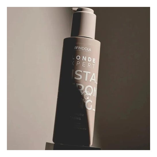 Creme sem enxágue que repara e protege o cabelo loiro após a descoloração e manutenção em casa.