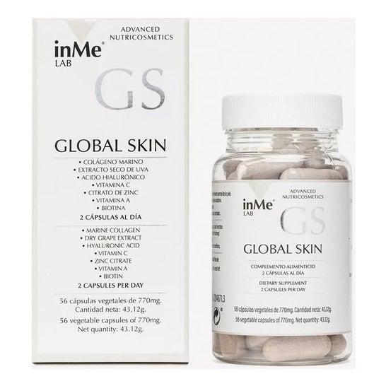 Além disso, Inme Lab Global Skin é útil para combater a secura ocular. Este complemento melhora a hidratação e a firmeza da pele, oferecendo um efeito preenchimento nas primeiras linhas de expressão e rugas já presentes. A ingestão de colágeno hidrolisado marinho favorece a atividade das células responsáveis por produzir colágeno na pele. Por outro lado, o ácido hialurônico atua como um agente retentor de água, melhorando de maneira significativa a hidratação tanto da pele quanto das mucosas. Também inclui extrato seco de uva, que proporciona efeitos antioxidantes.