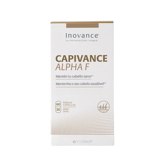 Inovance Capivance Alpha F 60 pérolas é um suplemento alimentar à base de extractos de plantas que ajudam a fortalecer o cabelo e a reduzir a queda.