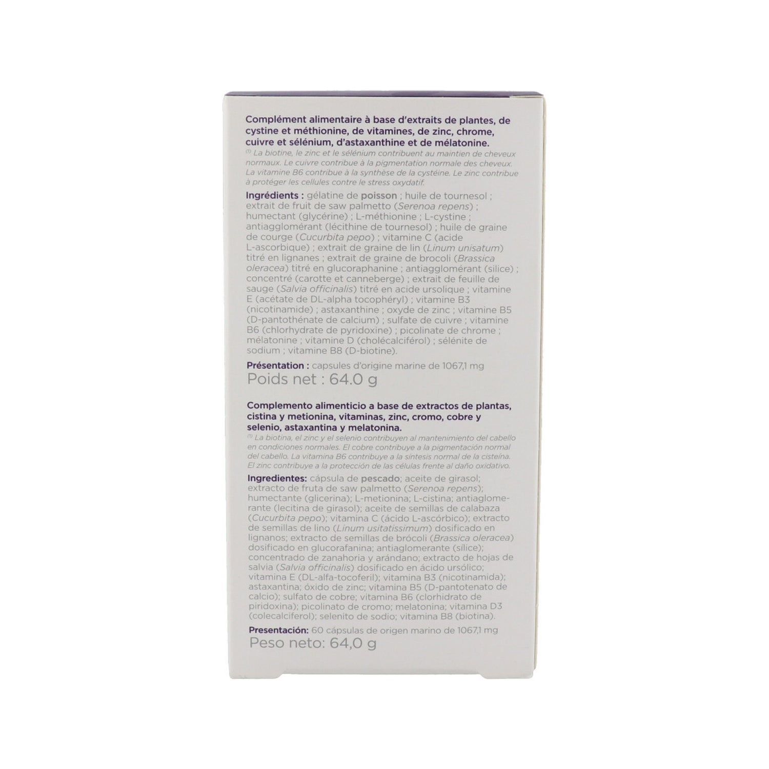 A sua fórmula fornece vitaminas, minerais e aminoácidos que favorecem a densidade do cabelo e ajudam a regular o ciclo capilar.