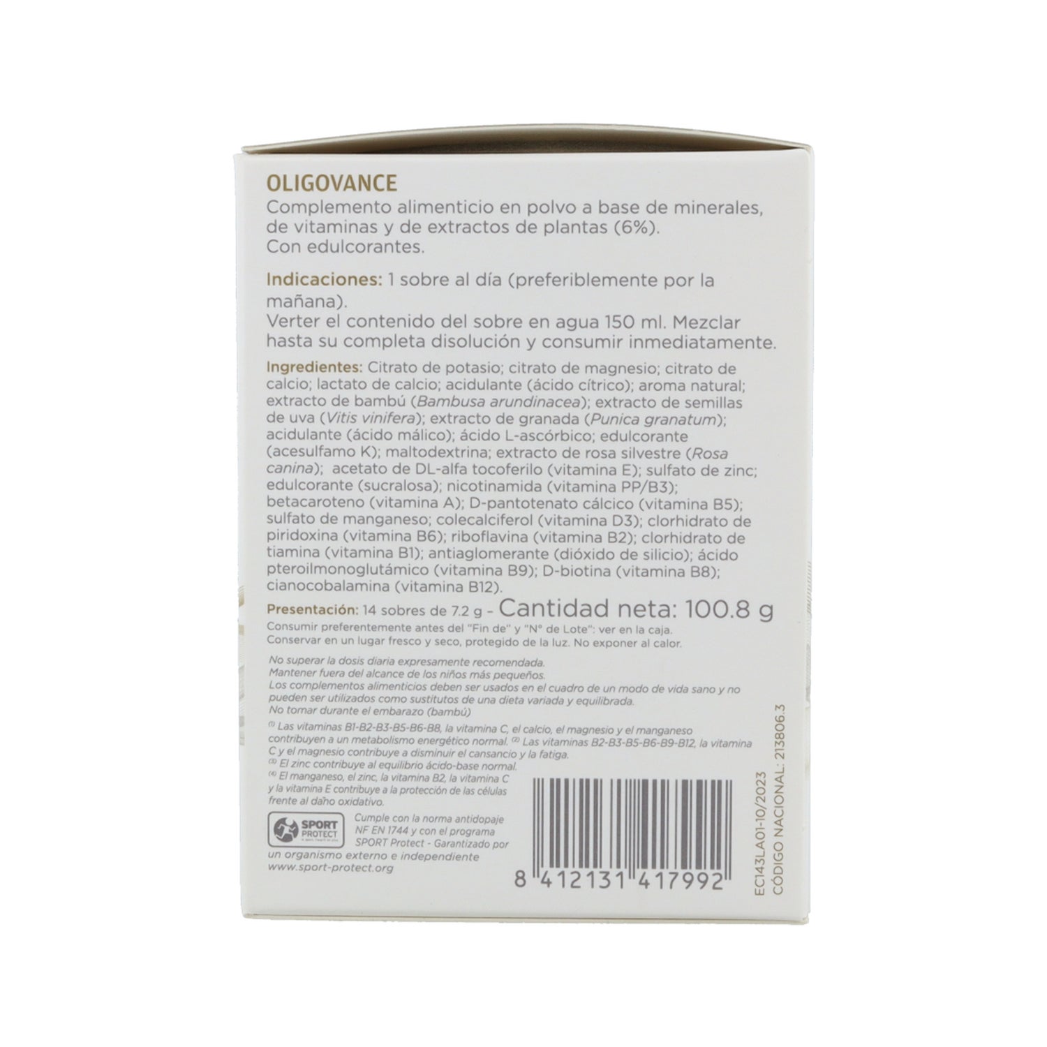 Inovance Oligovance 14 saquetas é um suplemento alimentar que ajuda o seu organismo a recuperar força e energia. Graças a uma sinergia de vitaminas, minerais e oligoelementos, contribui para o metabolismo energético e apoia o sistema imunitário. Ajuda o organismo a recuperar a força e a energia. Graças a uma sinergia de vitaminas, minerais e oligoelementos, contribui para o metabolismo energético e apoia o sistema imunitário.