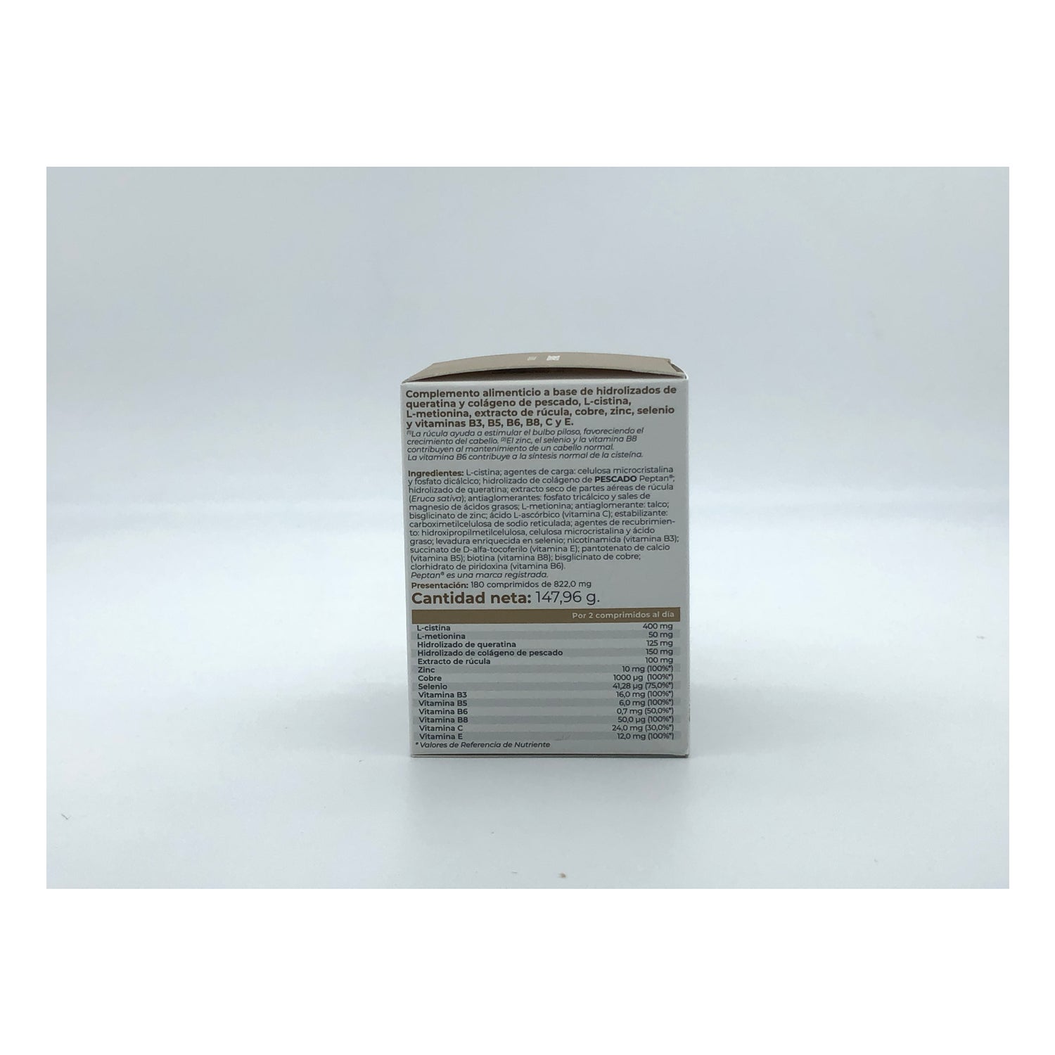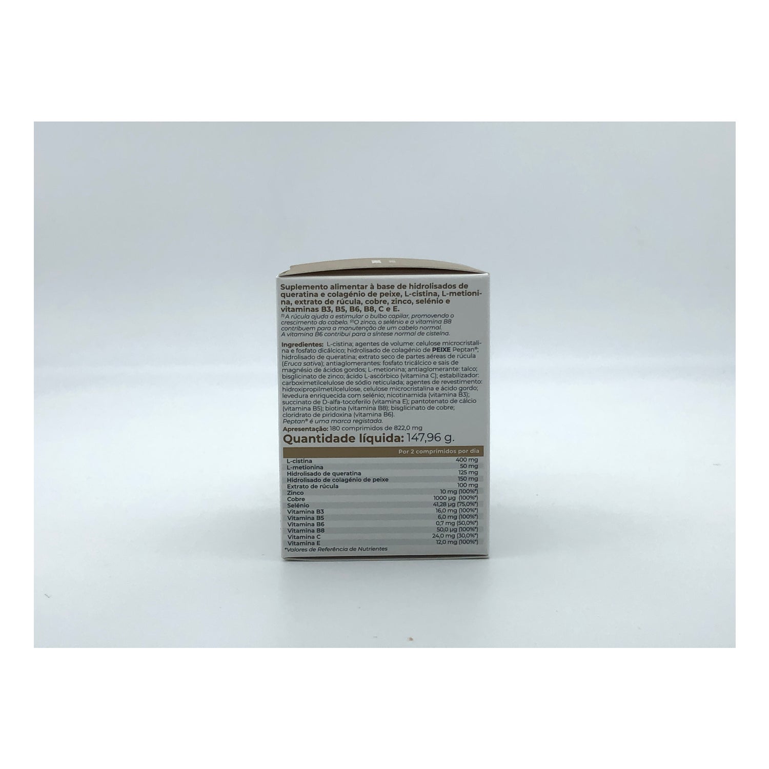 É formulado com extractos de plantas, cistina, vitaminas, crómio, cobre e selénio, que ajudam a fortalecer a fibra capilar.