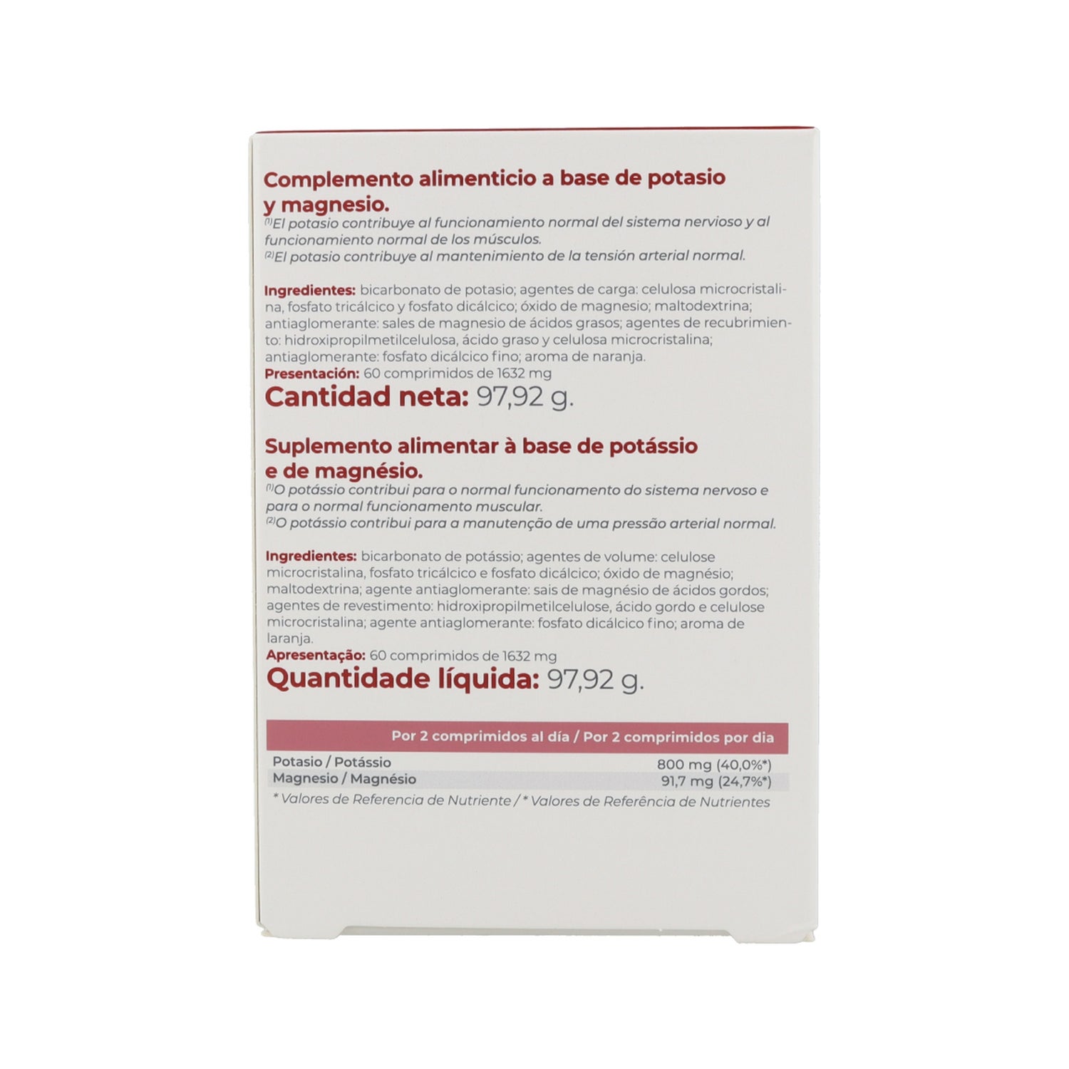 O potássio é apresentado na forma de bicarbonato para uma boa tolerância digestiva junto com o magnésio.