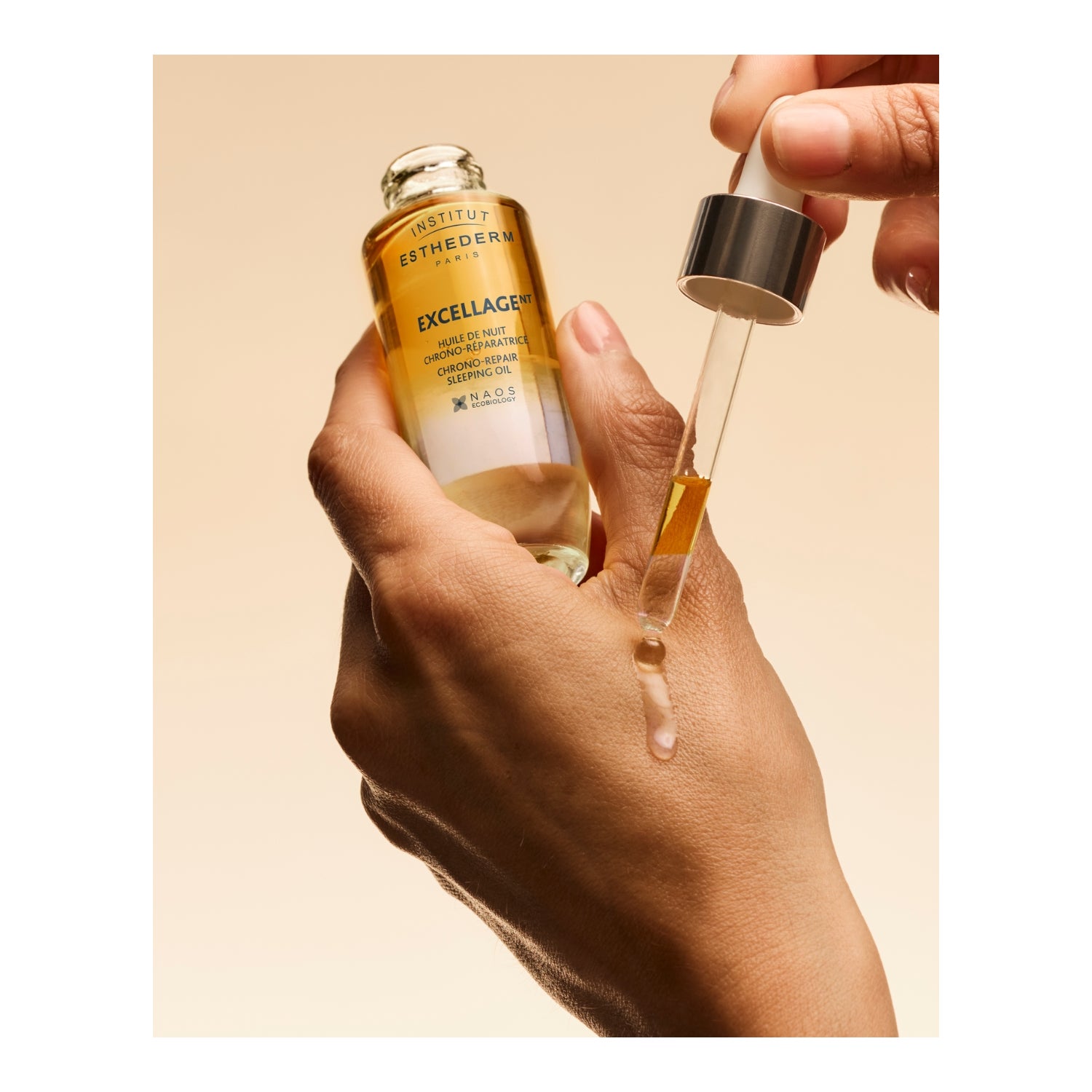 O Óleo de Noite Excellage atua em profundidade para resincronizar o ritmo natural da pele, permitindo que ela se regenere e se fortaleça durante o sono.