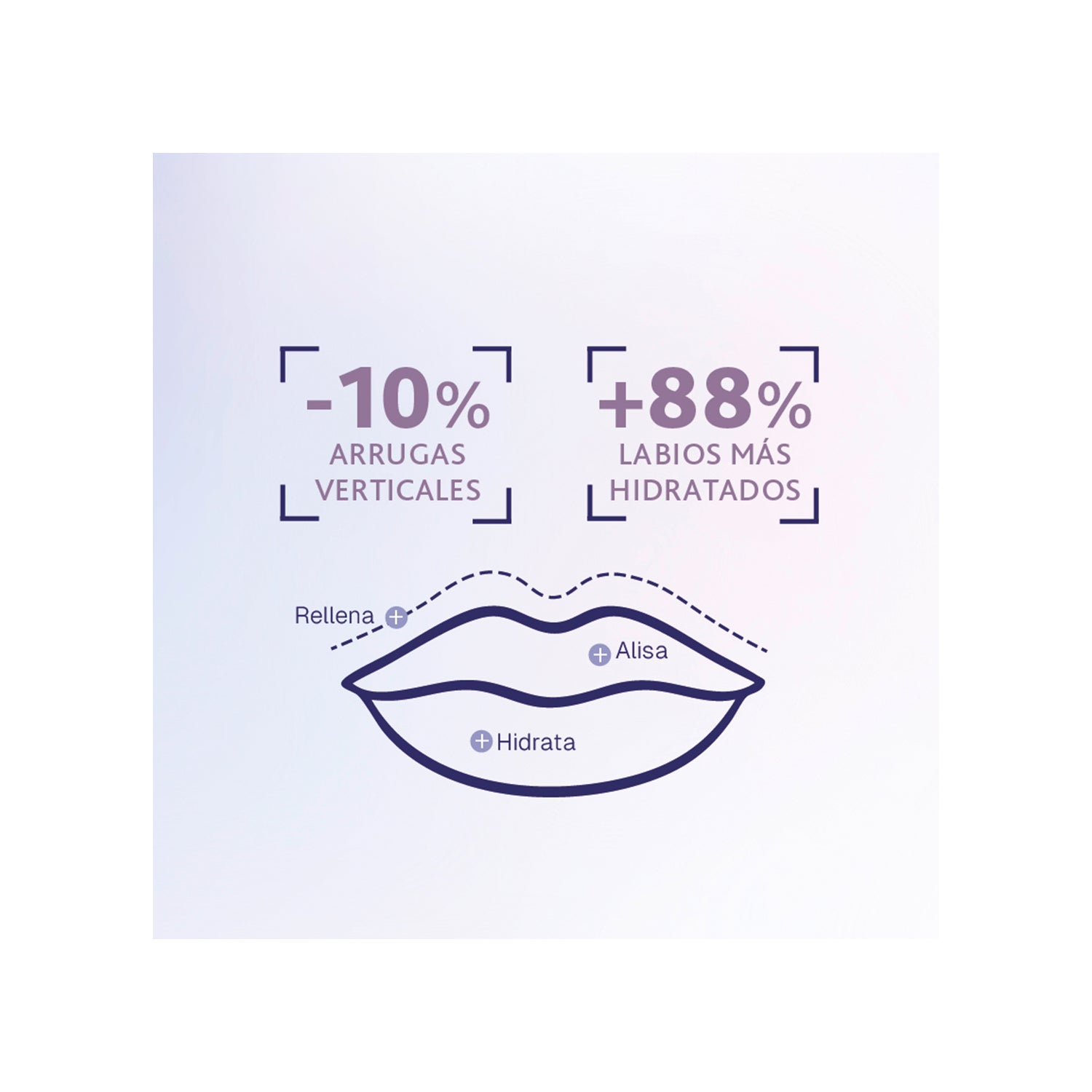 -10% Rugas verticais(1) +88% Lábios hidratados(2) (1) Avaliação clínica, 33 mulheres, 28 dias de uso duas vezes ao dia (2) Autoavaliação, 33 mulheres, 28 dias de uso duas vezes ao dia.