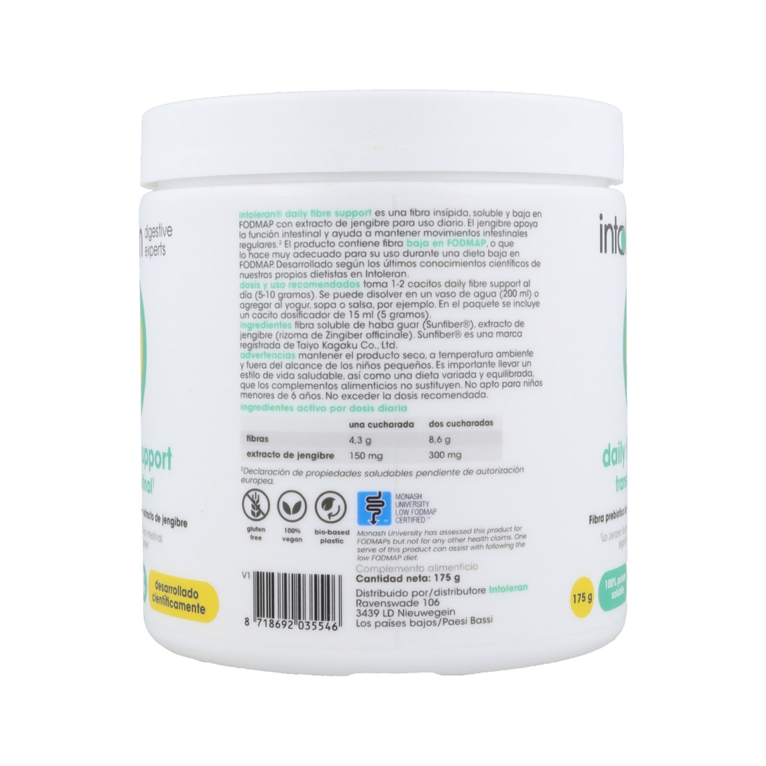 Intoleran Daily Fibre Support 175g é adequado para dietas veganas, assim como livre de glúten e soja, o que o torna uma opção confortável e eficaz para integrar na rotina diária. Recomenda-se consultar um profissional de saúde para seu uso.