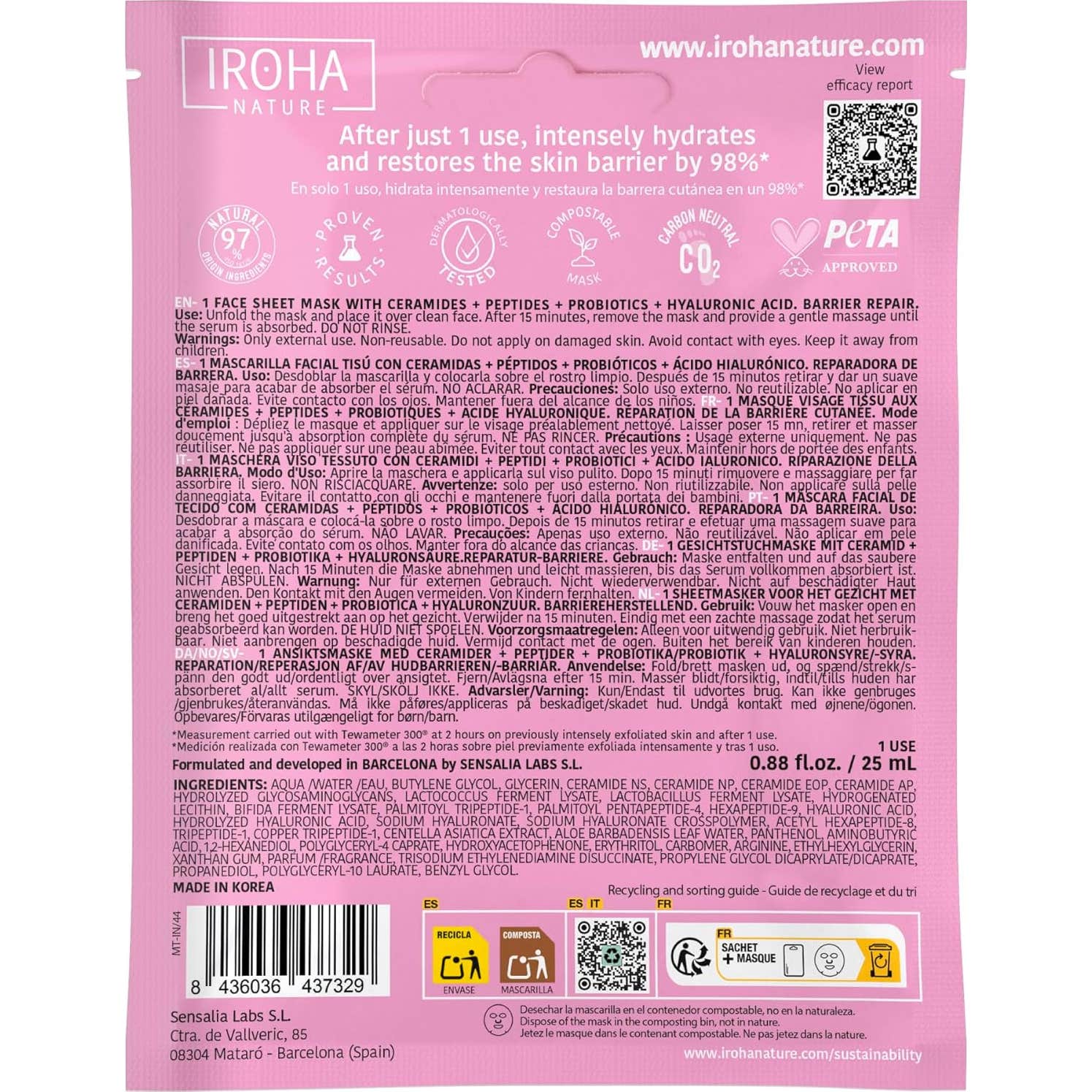Iroha Nature Sensitive Skin Barrier Repair Mask 25 ml é um tratamento projetado especificamente para a reparação da barreira cutânea em peles sensíveis. Este produto é composto por 97% de ingredientes naturais, que trabalham em conjunto para: