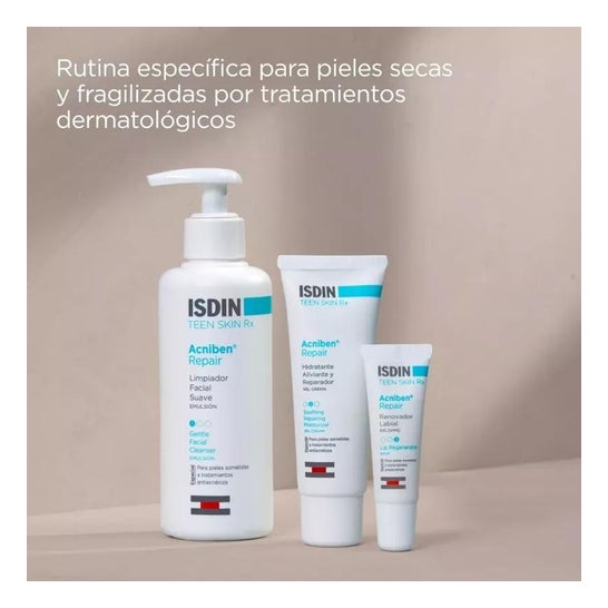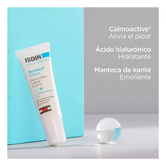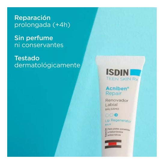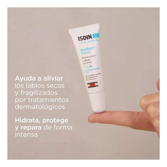 ISDIN Acniben Repair Renovador Labial Bálsamo 10ml é um produto projetado para reparar, renovar e hidratar os lábios danificados por tratamentos antiacne.