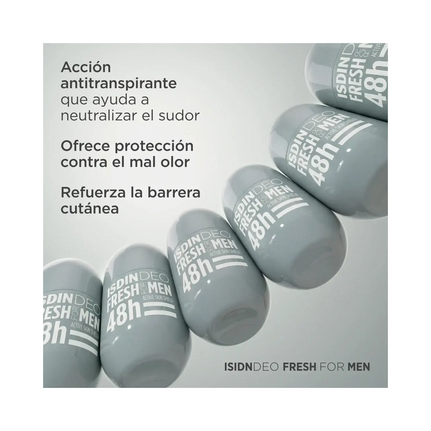 ISDIN Deo Fresh for Men 48H Roll-on 50ml é um desodorante que oferece um alto poder de controle da sudorese, que atua neutralizando os odores e a transpiração.