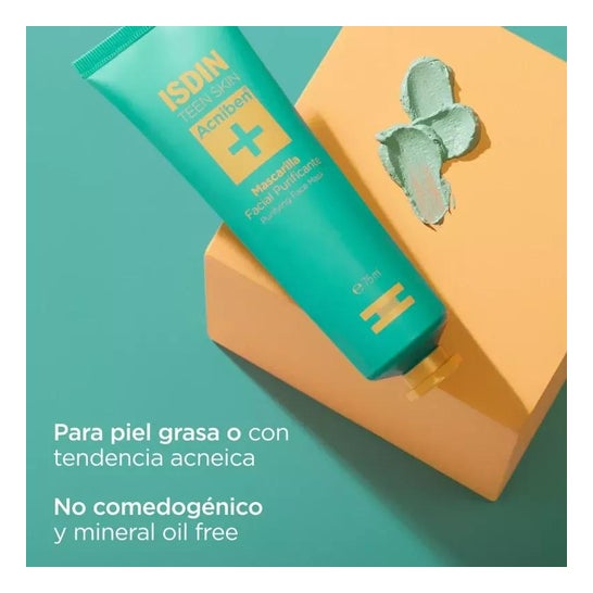 A Máscara Facial Purificante ISDIN Teen Skin Acniben 75ml é uma máscara facial purificante indicada para peles oleosas ou com tendência a acne. Também ajuda a limpar a tez em profundidade, graças à sua composição com argila de Tanakura, niacinamida e zinco, ingredientes que ajudam a absorver o excesso de oleosidade e a aliviar a vermelhidão da pele. Contém 75ml.