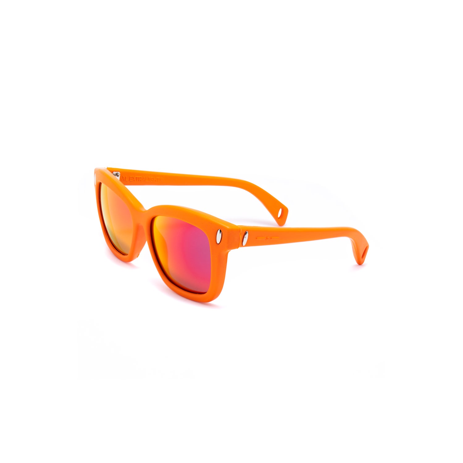 Óculos de sol que ajudam a proteger os olhos dos raios solares nocivos. Ajudam a melhorar a visão e a evitar o encandeamento, favorecendo o contraste normal das cores. Fabricados com uma armação de acetato em laranja LED e lentes espelhadas a condizer. Além disso, possuem uma estrutura de células fechadas resistente à água e aos raios UV. São adequados para passeios ao ar livre, locais com muita luz ou para complementar qualquer visual. Testados oftalmologicamente.