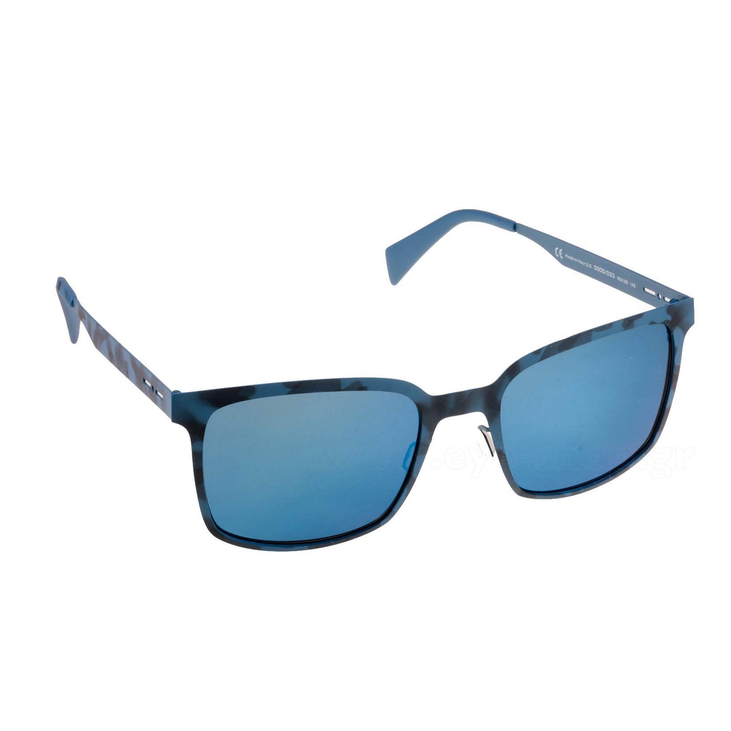 Óculos de sol masculinos com armações quadradas decoradas com estampas militares em tons azuis e lentes azuis. Ajudam a proteger os olhos dos raios UVA, UVB e UVC, previnem o encandeamento e aumentam o conforto visual. As lentes têm um diâmetro de 55mm. Incluem uma caixa de protecção de Italia Independent para facilitar o transporte e evitar arranhões.