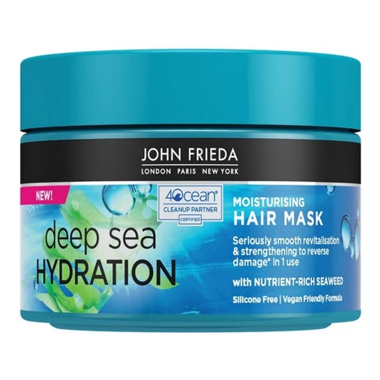 John Frieda Deep Sea Hydration Mask 250ml é uma máscara capilar hidratante que favorece a regeneração do cabelo.