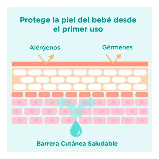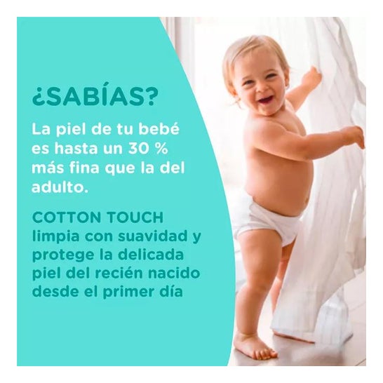 A sua fórmula com algodão puro é hipoalergénica, sem sulfatos, corantes e ftalatos, e não deixa resíduos na pele.