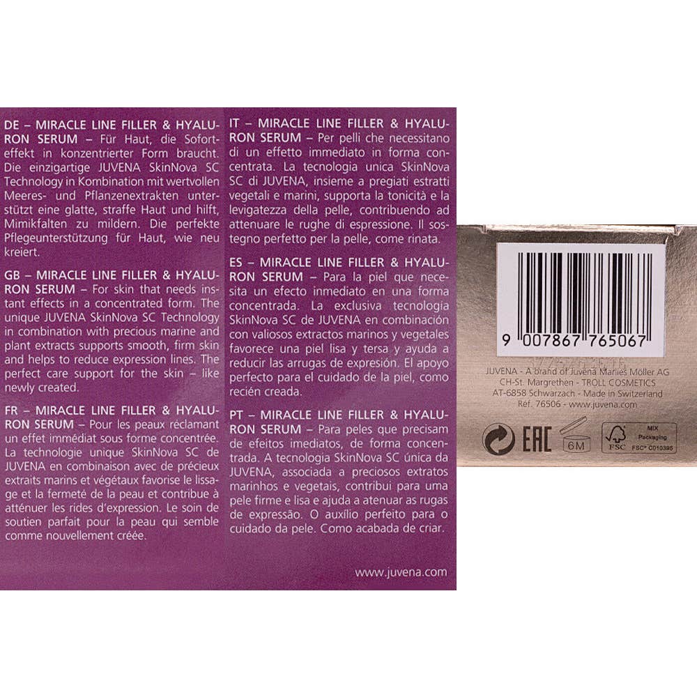 Juvena Miracle Line Filler & Hyaluron Serum é um sérum avançado que oferece resultados imediatos na redução de rugas. Com o passar do tempo, suas vivências e emoções se refletem na pele, e este produto foi projetado especificamente para suavizar as linhas de expressão.