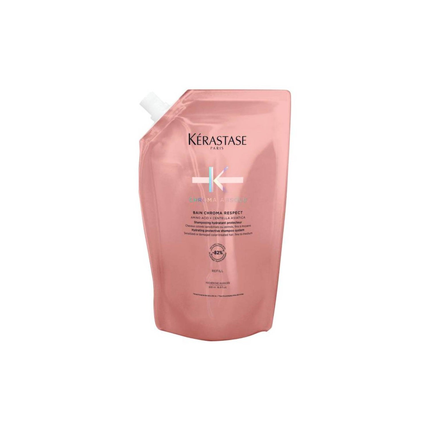 Kérastase Chroma Absolu Bain Chroma Respect Recarga 500ml é um shampoo projetado especificamente para o cuidado de cabelos coloridos, sensibilizados ou danificados. Este produto protege e mantém a vitalidade da cor desde o primeiro uso, garantindo intensidade e brilho prolongados.