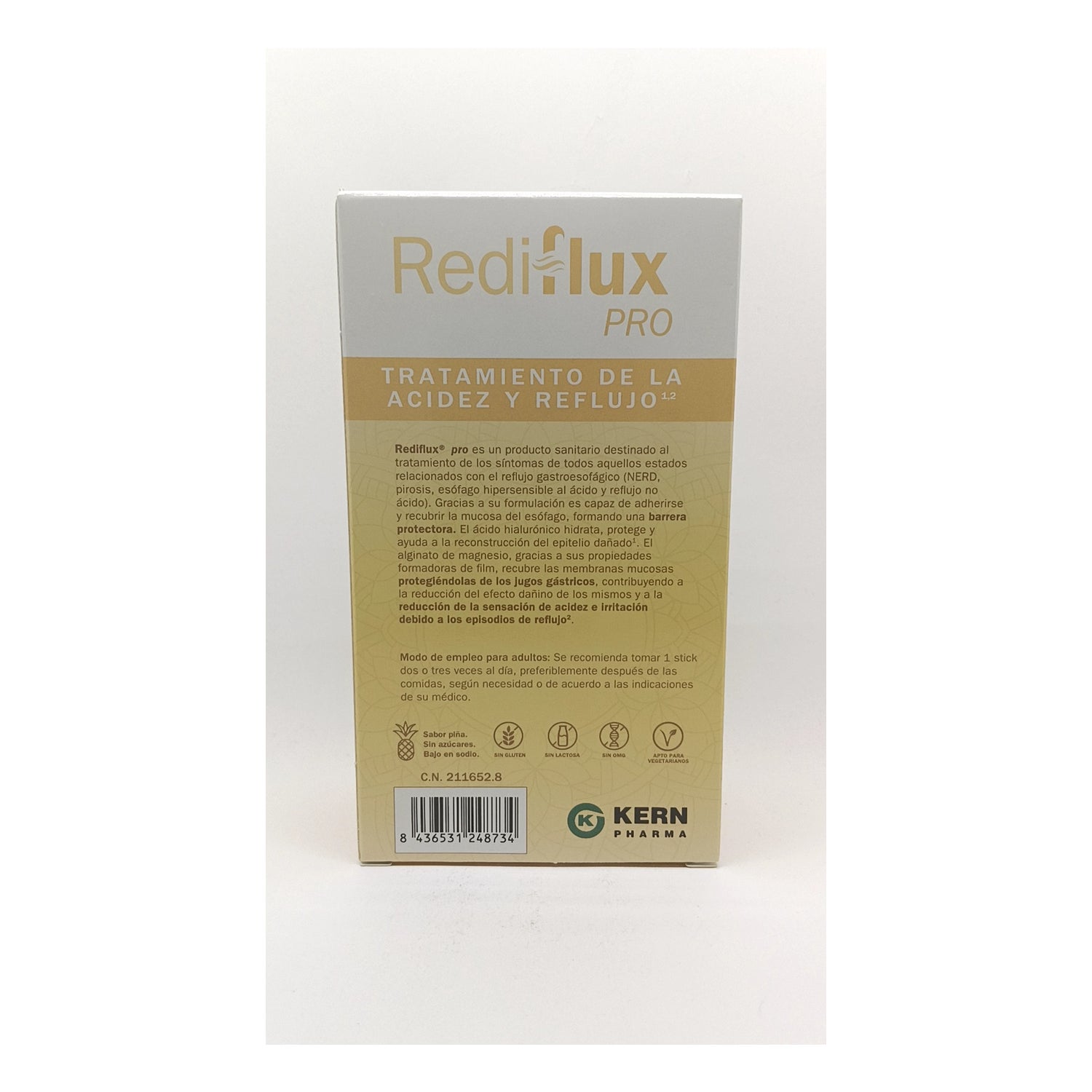 Kern Pharma Rediflux Pro é uma solução ideal para quem enfrenta desconfortos relacionados com a acidez e o refluxo. Cada pacote contém doze sticks de 15 ml, com um sabor agradável a abacaxi. Este produto se destaca por ser baixo em açúcares e sódio, tornando-o uma opção leve e saborosa.