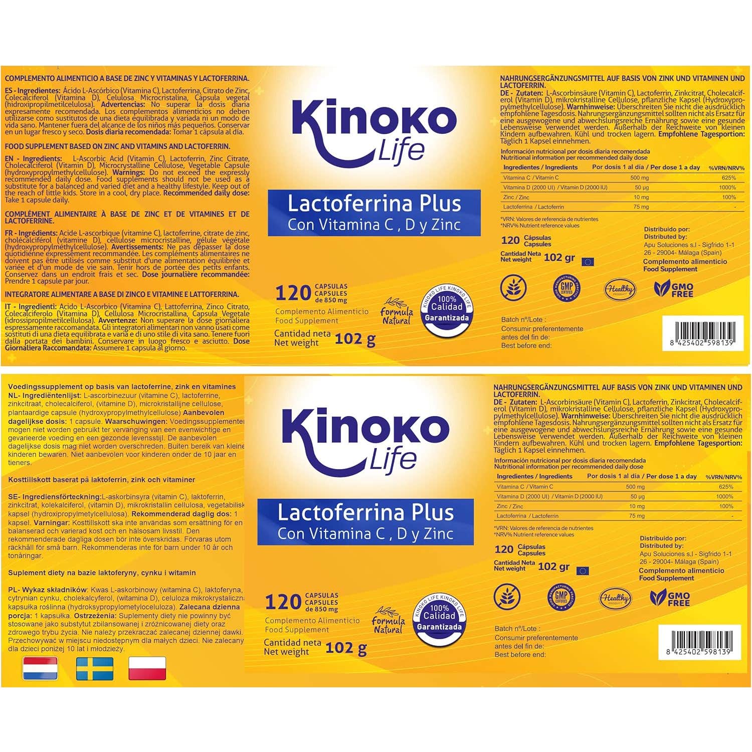 Kinoko Life Lactoferrina Plus com Vitamina C, D e Zinco é um suplemento projetado para fortalecer o sistema imunológico. Cada embalagem contém 120 cápsulas, que fornecem uma fórmula de alta concentração em uma única dose diária.