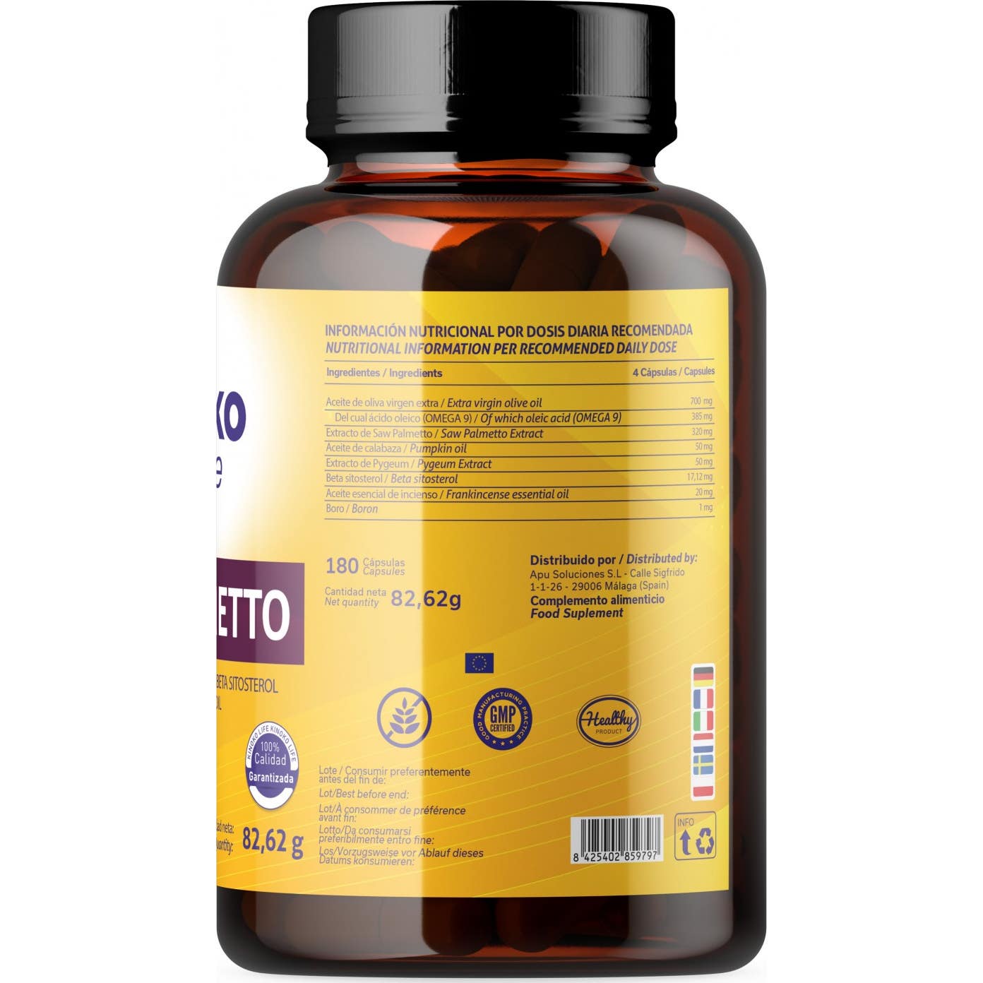 Este suplemento se destaca por sua fórmula inovadora. As cápsulas líquidas que o compõem permitem uma máxima absorção dos bioativos, o que se traduz em uma maior efetividade. Além do Saw Palmetto (Serenoa repens), cada cápsula é enriquecida com: