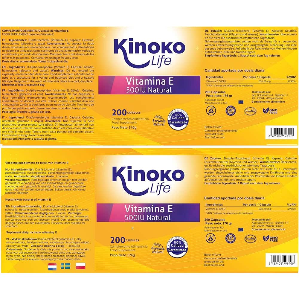Kinoko Life Vitamina E 500IU Natural é um suplemento que oferece uma concentração superior de vitamina E, apresentando 500 UI por cápsula, em vez das 400 UI comuns em outros produtos. Este formato de economia inclui 200 cápsulas, o que proporciona um suprimento para quase 7 meses com uma dose diária recomendada.