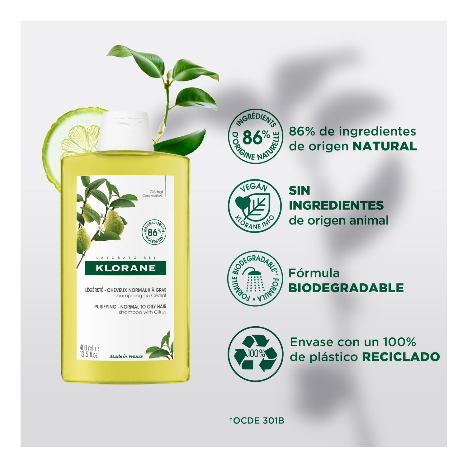 Klorane Champô de Polpa de Cidra 400ml é um champô que ajuda a recuperar o brilho do cabelo, eliminando o excesso de sebo do cabelo.