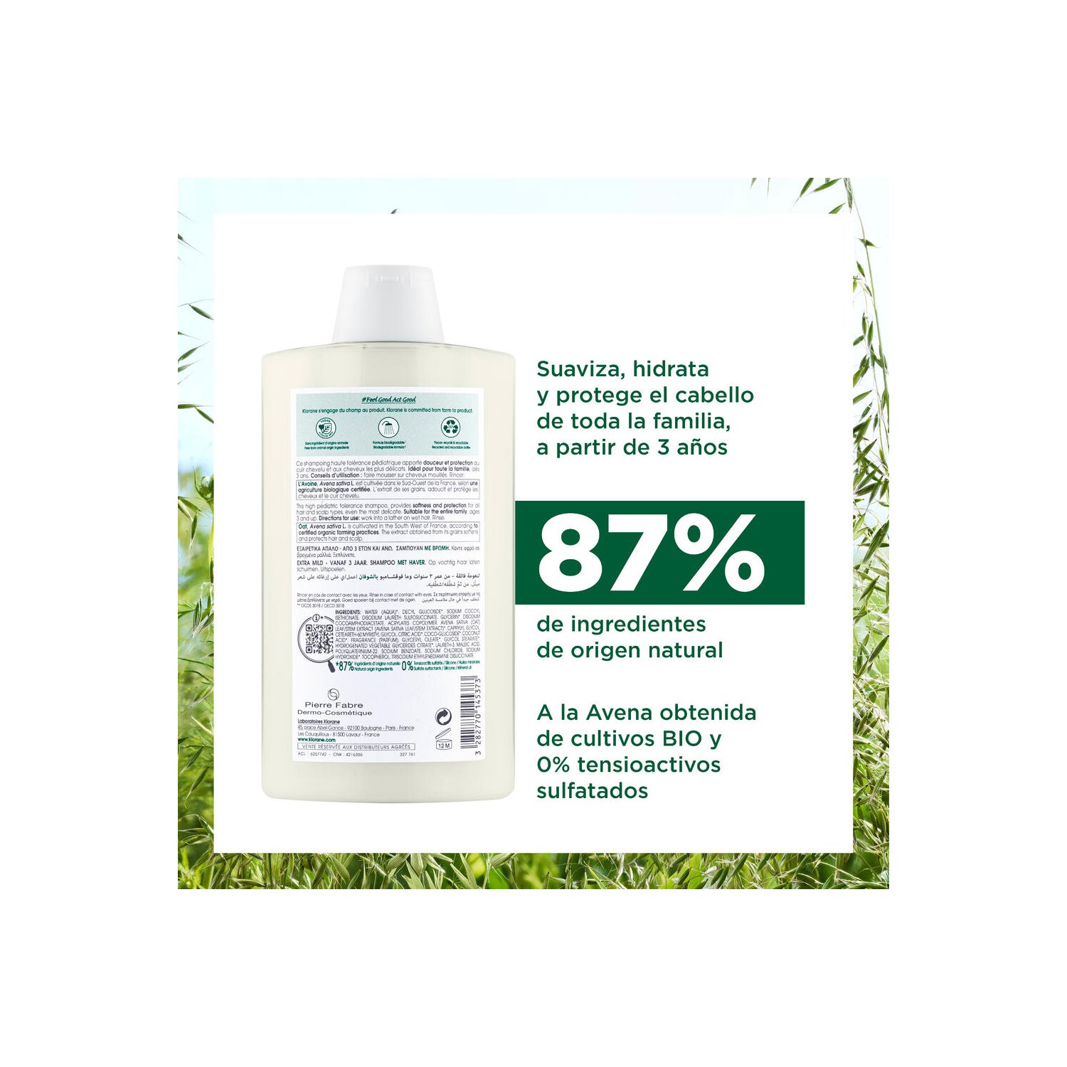 Formulado com 87% de ingredientes naturais, que proporciona hidratação e suavidade graças à aveia presente em sua composição. Seu efeito suavizante ajuda a pentear e desembaraçar facilmente e sem dor nem perda de cabelo.