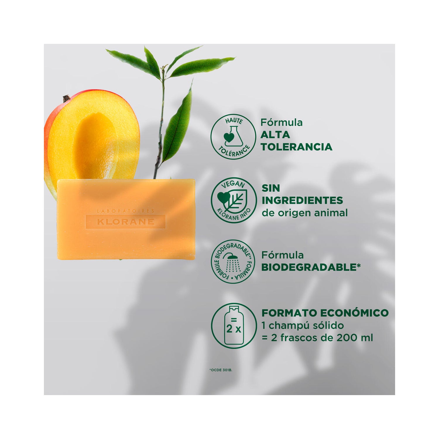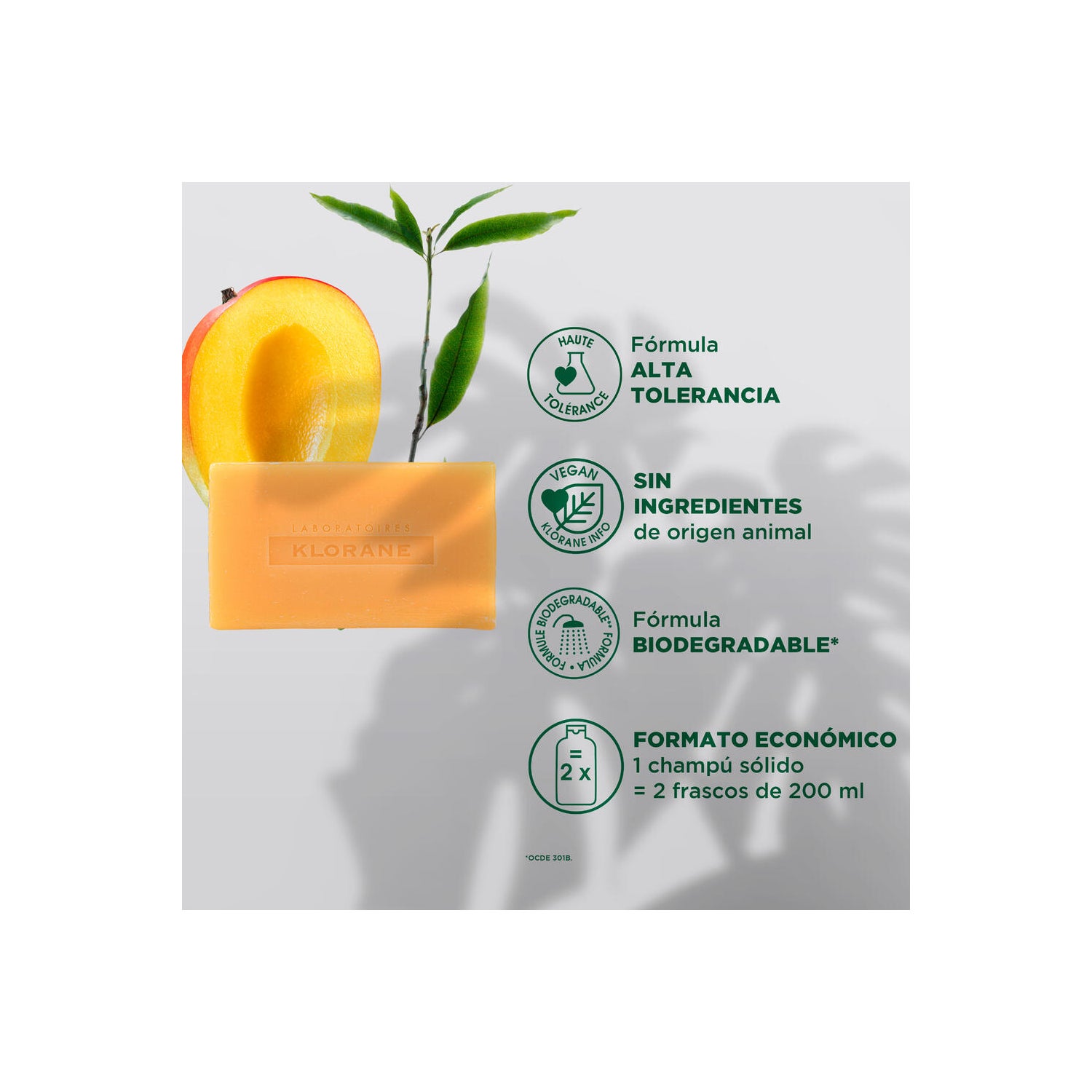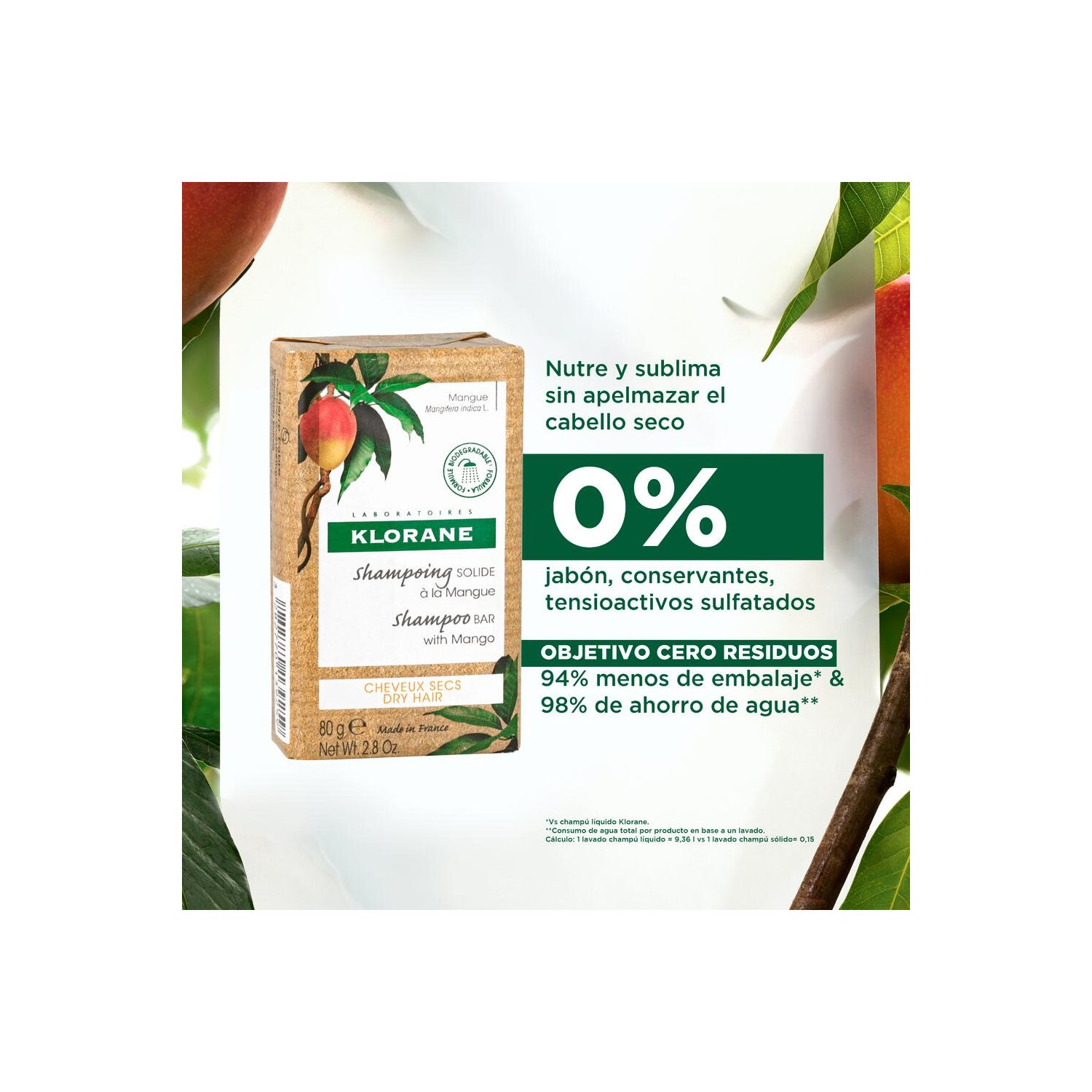 Klorane Champô Sólido Manga 80 g é um champô sólido que hidrata e nutre o cabelo seco, formulado com manteiga de manga que proporciona hidratação e nutrição.