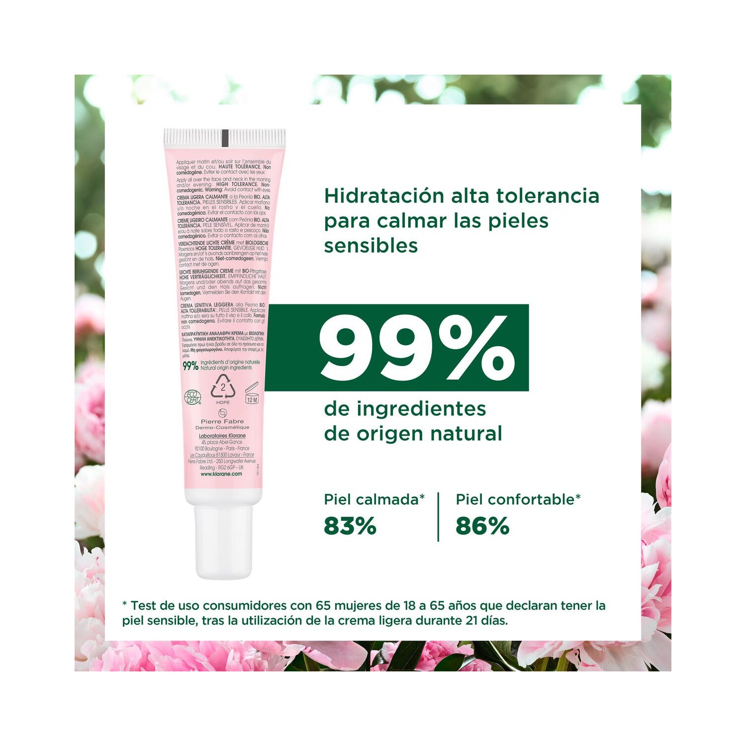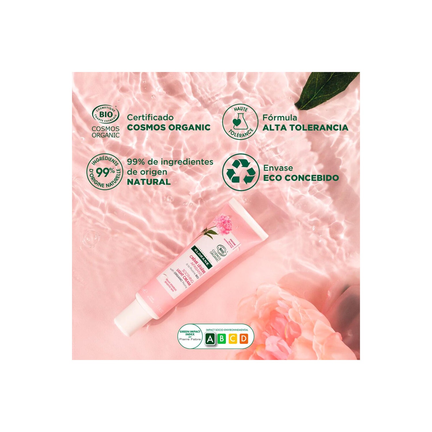 Klorane Peony Soothing Light Cream Bio 40 ml é um creme ligeiro à base de extrato de peónia, óleo de argão e de cártamo de agricultura biológica que ajuda a acalmar as irritações cutâneas.