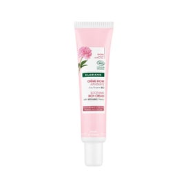 Klorane Rich Soothing Peony Rich Cream Bio 40 ml é um creme para o rosto à base de extrato de peónia, óleo de argão e de cártamo de agricultura biológica que ajuda a acalmar as irritações cutâneas.
