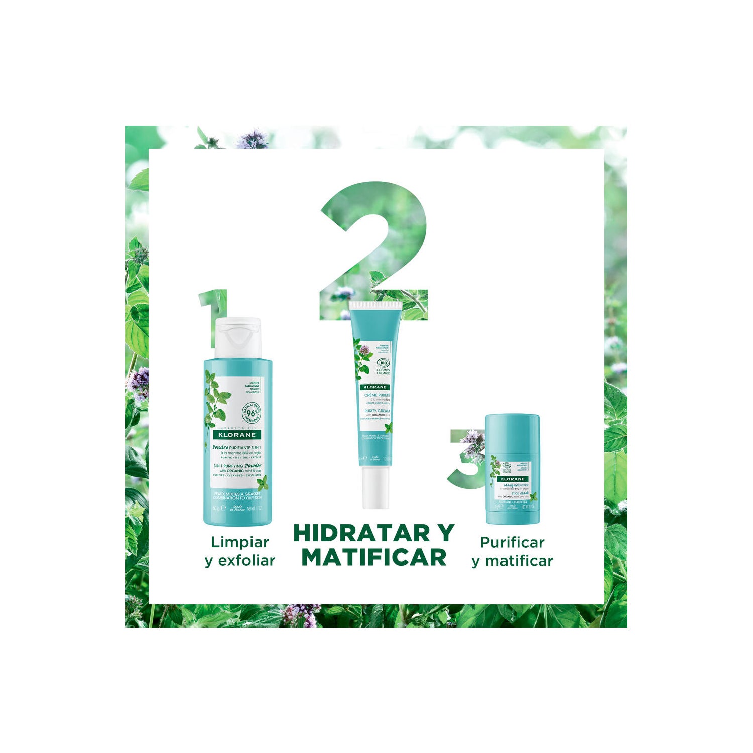 A sua fórmula associa a Hortelã Aquática Biológica, com propriedades desintoxicantes e antioxidantes, e a Monolaurina, com ação seborreguladora.