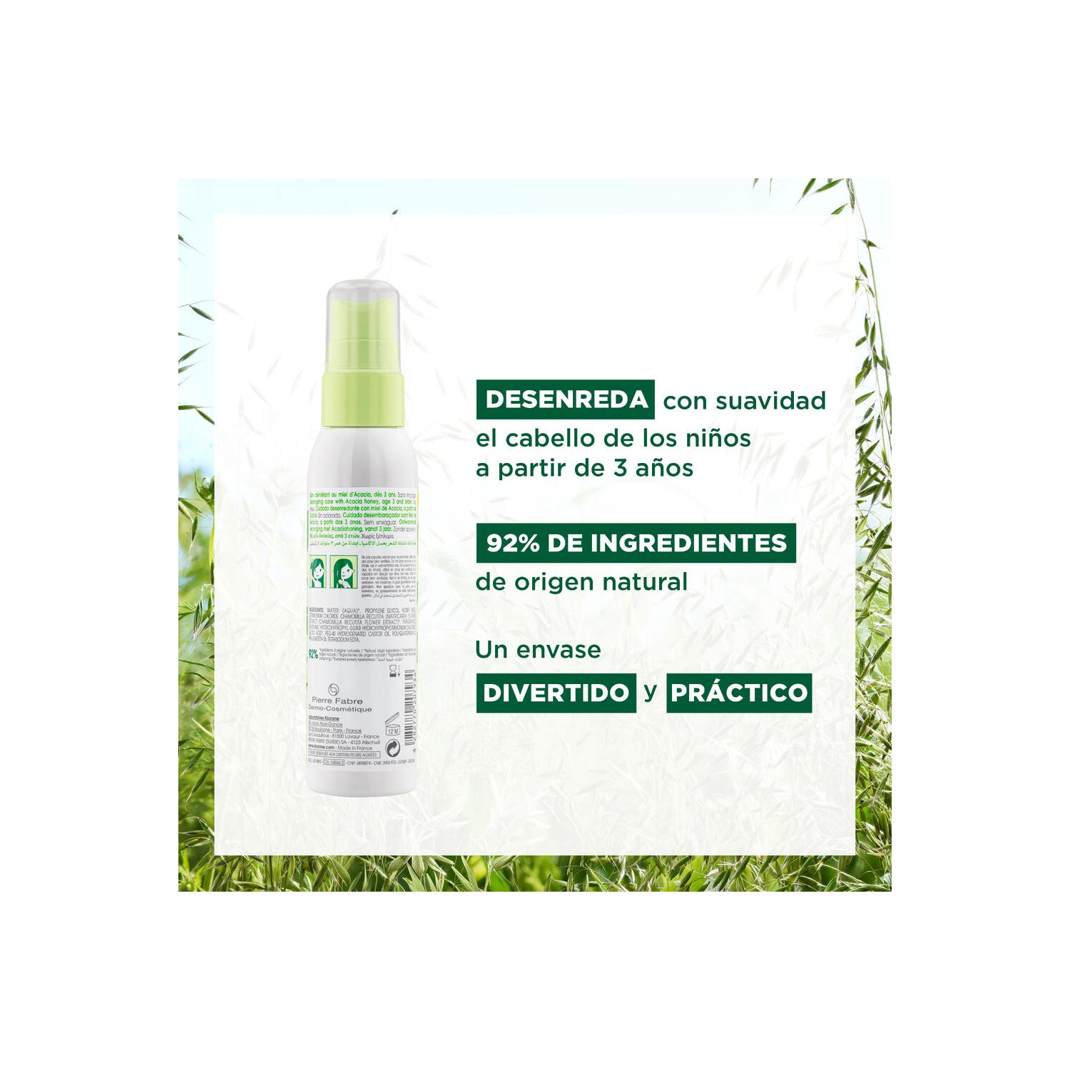 Elaborado com 92% de ingredientes naturais, como o mel de acácia, rico em polissacáridos, torna o cabelo flexível, facilitando o desembaraçar e o pentear sem o deixar gorduroso. Também não contém silicone, amoníaco e peróxido de hidrogénio.