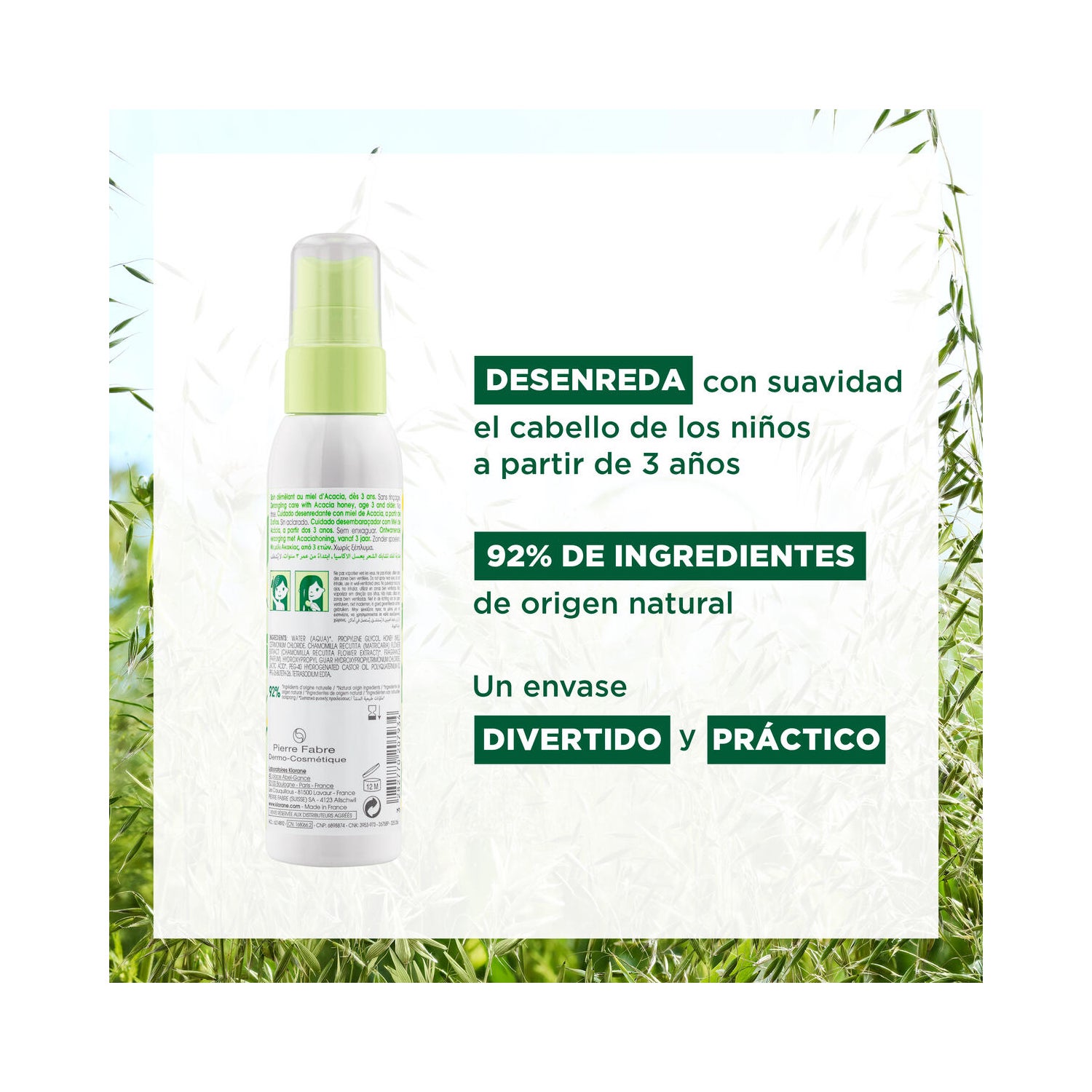 Klorane Honey Detangling Spray 125ml é um spray de mel que ajuda a desembaraçar os cabelos frágeis, longos e/ou encaracolados .