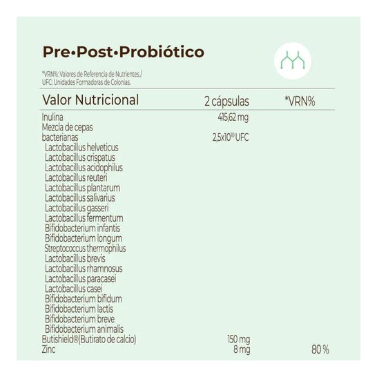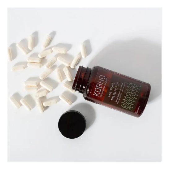 Kobho Pre-Post Probiotic 60caps é um suplemento alimentar formulado com prebióticos, probióticos e postbióticos e zinco que contribuem para a saúde da microbiota intestinal.